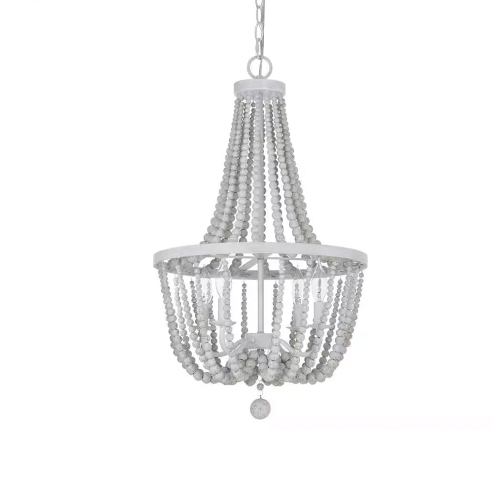 Adelaide 4-Light Weathered White Wood Bead Chandelier - 1006597801