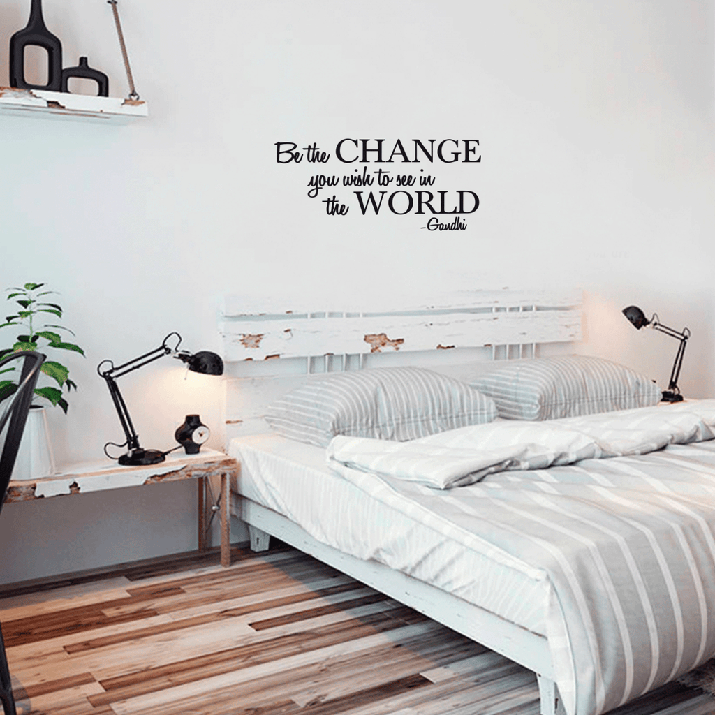 This positive quote Be The Change You Want To See Gandhi famous quote wall art decal is motivational and the perfect touch for both indoor and outdoor decoration. It is a Vinyl sticker that is easy to put onto almost any surface and really brings a room together adding the perfect amount of decoration. This motivational vinyl decal quote reminds people to be true to themselves and is inspiring. Our motivational quotes don't just brighten up the room; but brighten up the day. Using top of the line vinyl across all of our production allows us to be the leaders in quality and design. Each vinyl decal quotes range in color bringing variety to you wherever you are.