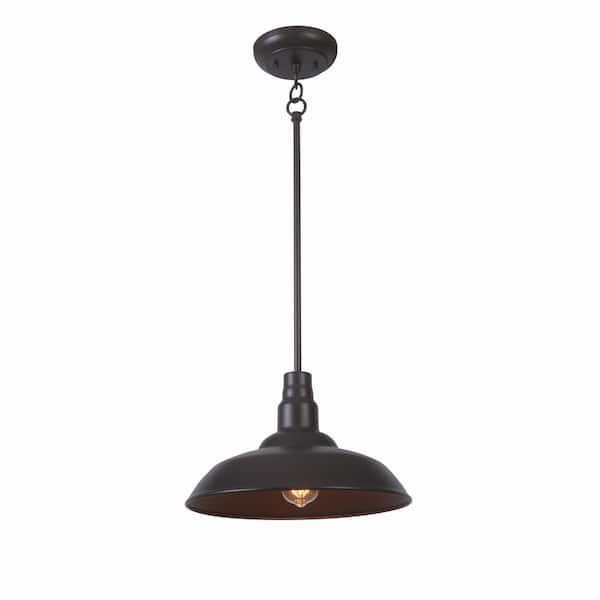 La lámpara colgante exterior marrón de 14 in. Bell Ridge de Home Decorators Collection (Modelo: HDP99215BRN) es una adición encantadora a cualquier espacio exterior. Esta mini lámpara colgante presenta un diseño industrial vintage con una amplia pantalla estilo granero que proporciona una iluminación descendente brillante. El elegante acabado marrón oscuro complementa varios estilos de decoración, incluyendo industrial, urbano, vintage, rústico y de granja. La lámpara es compatible con techos abovedados e inclinados, gracias a las varillas de extensión adicionales incluidas en el paquete. Está diseñada para usar con bombillas estilo Edison antiguas y otras bombillas de diseño, lo que la convierte en una solución de iluminación versátil para patios, porches, pérgolas y otras áreas exteriores. La lámpara de instalación fija viene con todo el hardware de montaje necesario, cable eléctrico e instrucciones para una instalación fácil y segura. Mejora tu ambiente exterior con la mini lámpara colgante Bell Ridge, combinando funcionalidad y estilo en un paquete elegante
