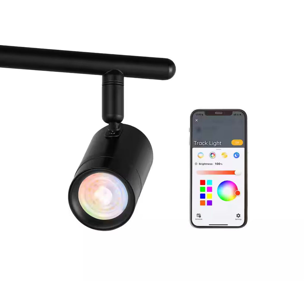Boedy 2 ft. 3-Light Smart Matte Black Integrated LED Fixed Track Lighting Kit with Night Light Powered by Hubspace - 1009105587