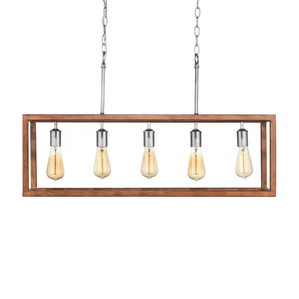 Boswell Quarter 5-Light Painted Chestnut Wood Coastal Galvanized Island Chandelier with Silver Accents for Dining Rooms - 1003202199