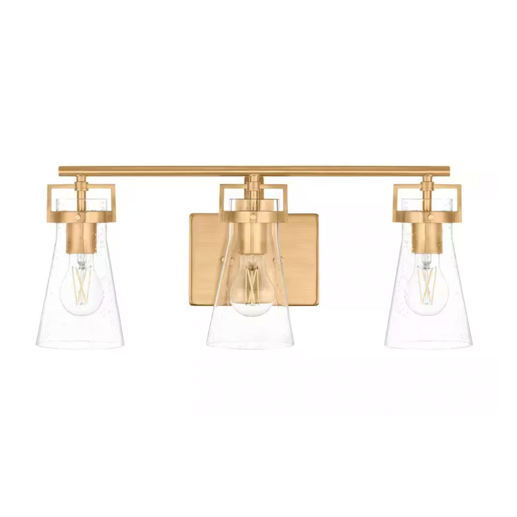 Clermont 22 in. 3-Light Satin Brass Bathroom Vanity Light with Seeded Glass Shades - 1008824951