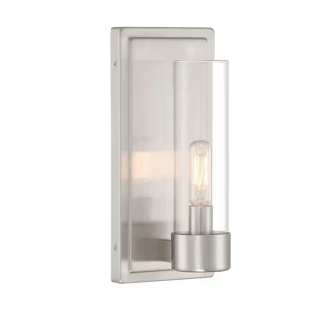 Descubre el/la Closmere 5 in. 1-Light Brushed Nickel Mid-Century Modern Wall Sconce with Clear Glass Shade - 1007476390 en México. Envío rápido y precio competitivo.