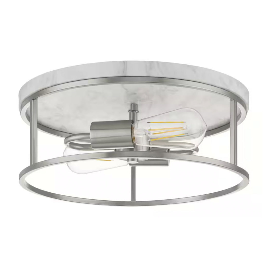 Cogburn 13 in. 2-Light Brushed Nickel with White Marbled Base Flush Mount - 1008010596