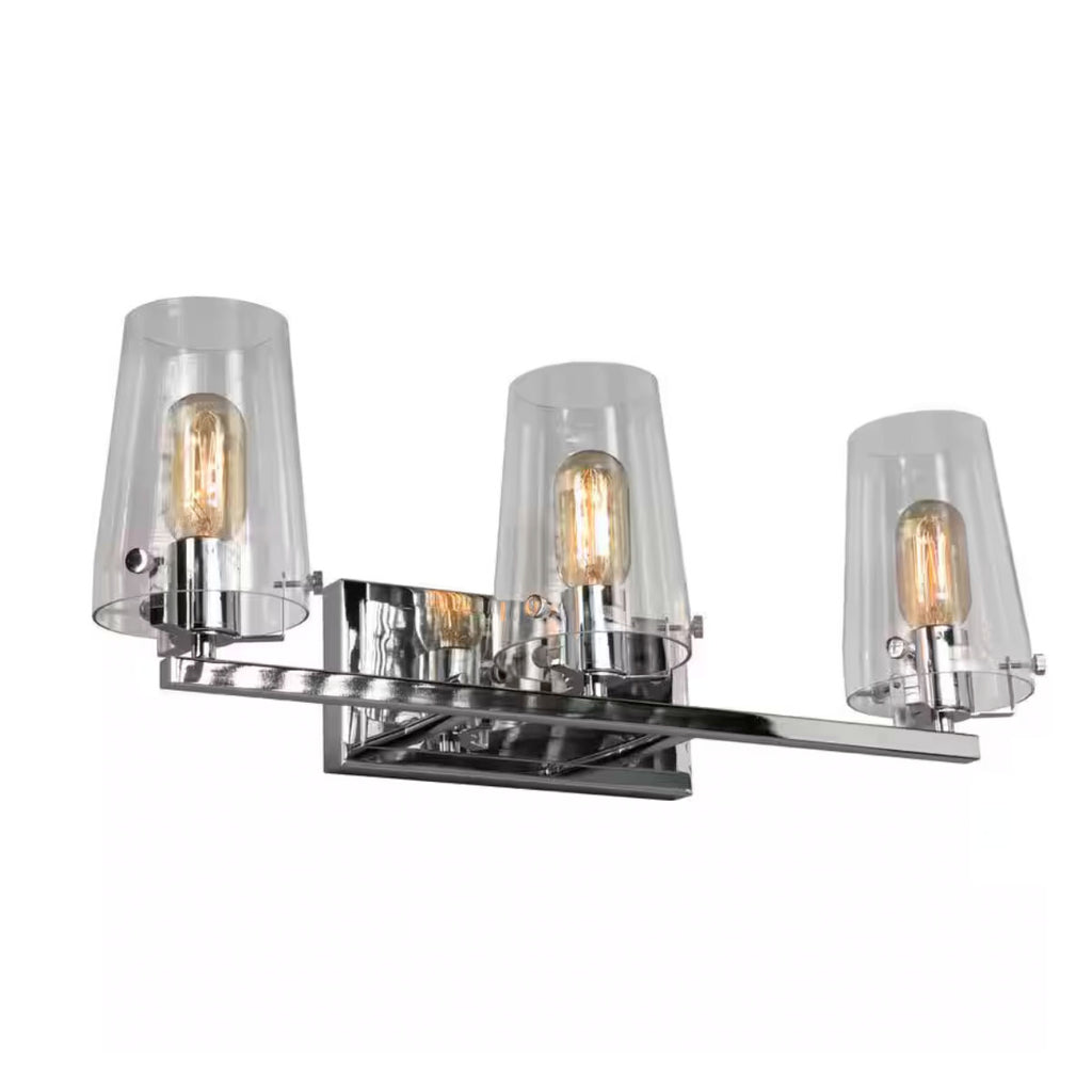 Creek Crossing 24 in. 3-Light Chrome Industrial Bathroom Vanity Light with Clear Glass Shades - 1006367846