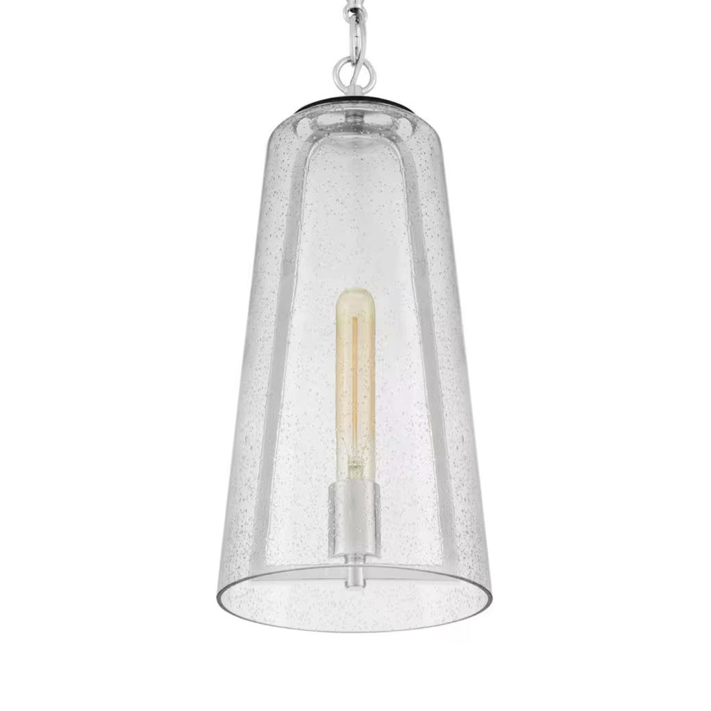 Desmond 60-Watt 1-Light Polished Nickel Pendant with Smoke Seedy Glass Shade - 1007475983