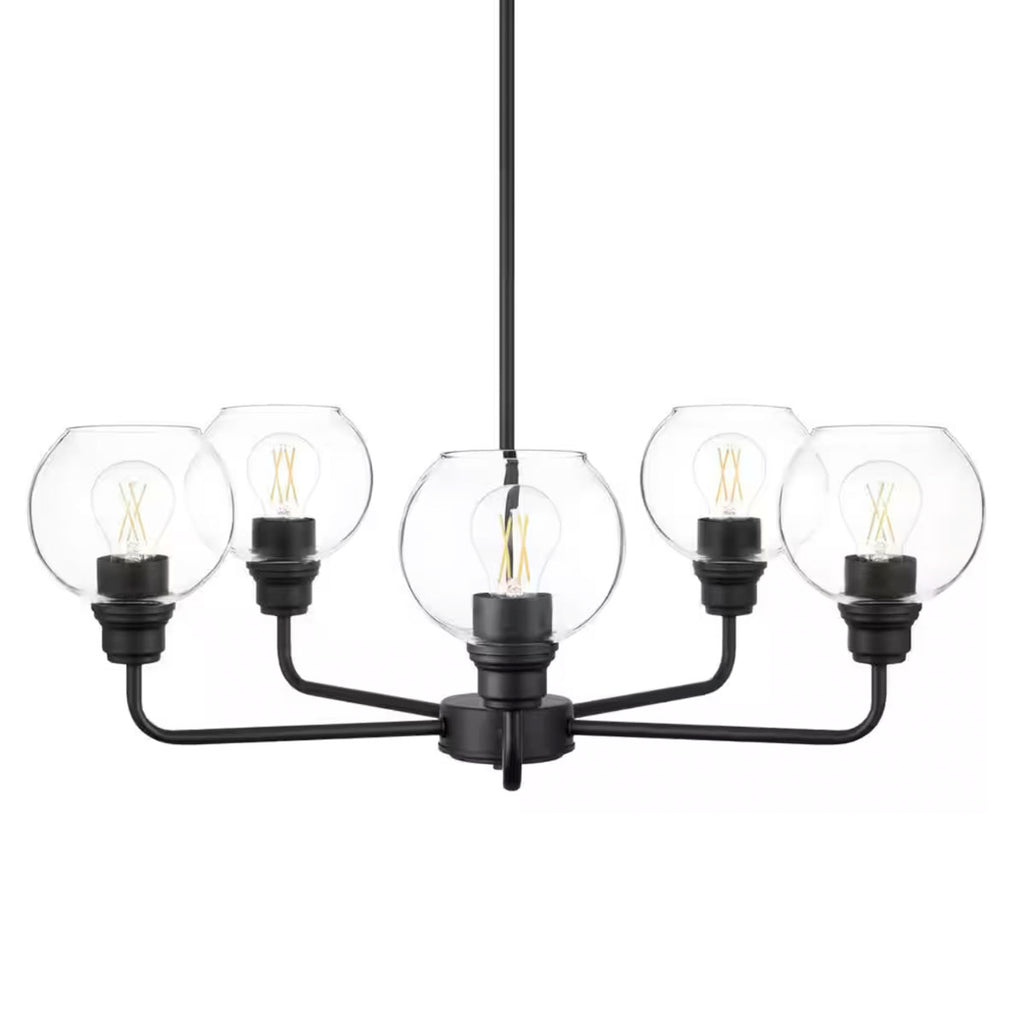 Florabelle 5-Light Chandelier Matte Black Clear Globe Glass Shades - 1008790599