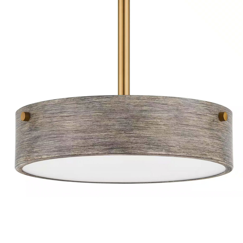 Huntmoor 60-Watt 3-Light Old Satin Brass Pendant with Ebony Wood Metal and Etched White Diffuser Shade - 1008813401