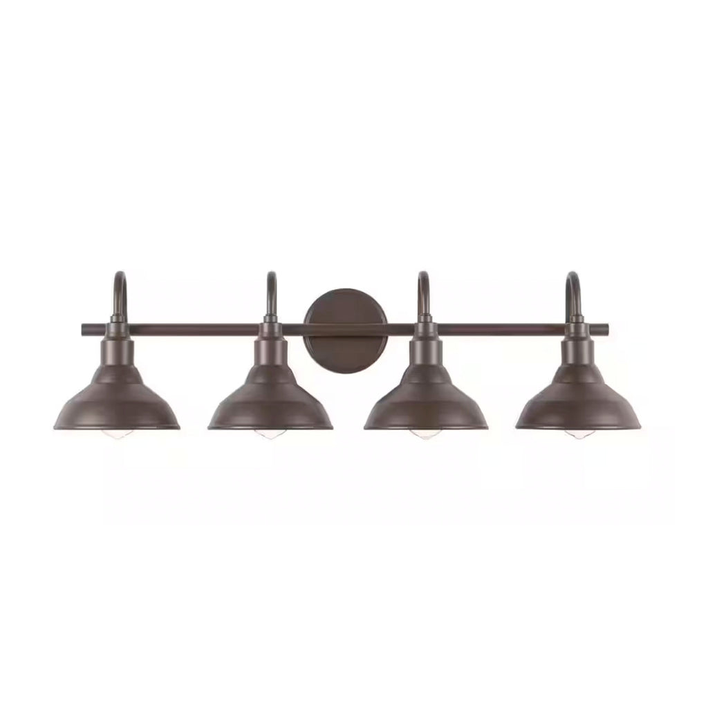 Mejora tu baño o pasillo con la luz de tocador Hampton Bay Kelford de 32 in. y 4 luces en marrón. Este elegante accesorio combina estética clásica de estilo rústico con funcionalidad práctica. El acabado marrón cálido y las pantallas metálicas estilo granero crean un aspecto rústico encantador que complementa cualquier decoración. La luz de tocador está diseñada para acomodar cuatro bombillas de base media de 60 vatios (no incluidas), proporcionando una iluminación brillante y efectiva. La función regulable permite ajustar la intensidad de la luz según tus necesidades, haciéndola perfecta para diversos entornos, desde iluminación ambiental hasta iluminación de tareas enfocadas. Este accesorio es fácil de instalar y viene con todo el hardware necesario, lo que lo convierte en una opción conveniente para actualizar tu hogar. Con su diseño versátil, la luz de tocador Kelford es una excelente adición a cualquier decoración de estilo rústico, industrial o cottage chic.