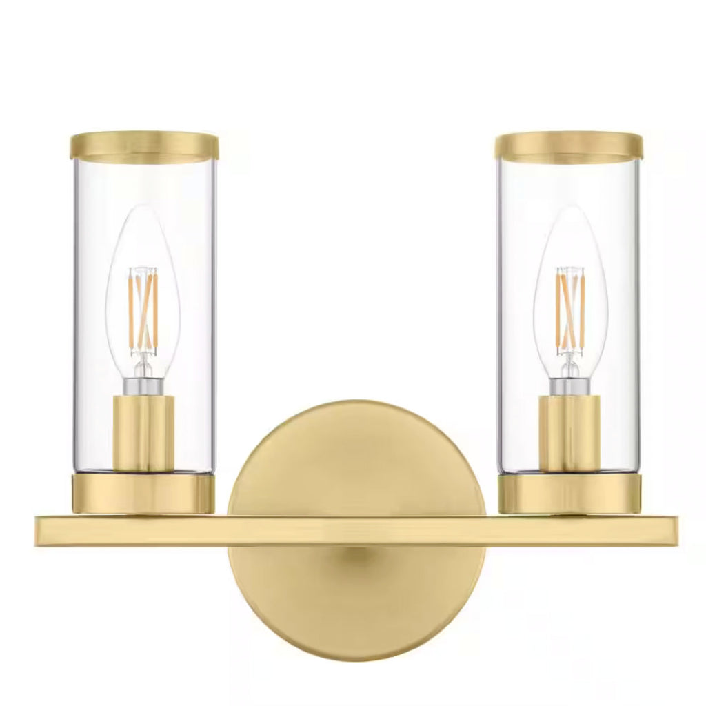 Loveland 10.5 in. 2-Light Brass Bathroom Vanity Light Fixture with Clear Glass Shades - 1008650653