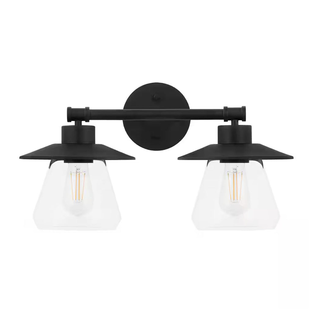 Mejora tu baño, sala de estar, comedor o dormitorio con la luz de tocador Hampton Bay Northmoore de 18 in. y 2 luces en negro mate. Este elegante accesorio combina estética moderna de estilo rústico con funcionalidad práctica. El acabado negro mate y las pantallas de vidrio transparente crean un aspecto elegante y rústico que complementa cualquier decoración. La luz de tocador está diseñada para acomodar dos bombillas de base media de 60 vatios (no incluidas), proporcionando una iluminación brillante y efectiva. La función regulable permite ajustar la intensidad de la luz según tus necesidades, haciéndola perfecta para diversos entornos, desde iluminación ambiental hasta iluminación de tareas enfocadas. Este accesorio es fácil de instalar y viene con todo el hardware necesario, lo que lo convierte en una opción conveniente para actualizar tu hogar. Con su diseño versátil, la luz de tocador Northmoore es una excelente adición a cualquier decoración moderna o inspirada en el estilo rústico.