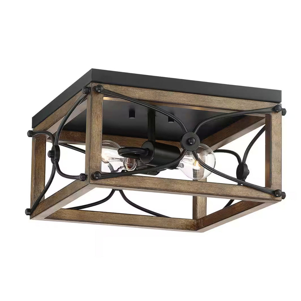 Open square 14 in. 2-Light Painted Wood with Vintage Black Flush Mount - 1004573350