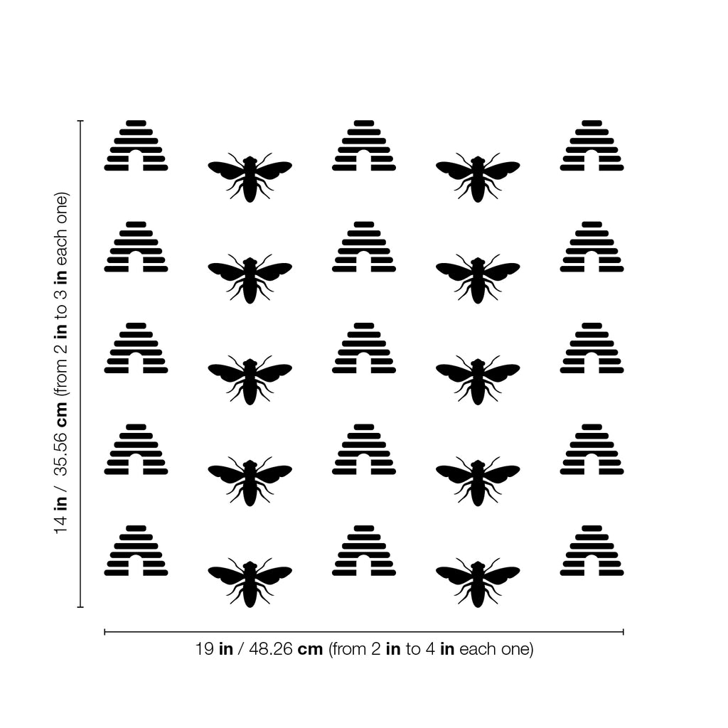 Set Of 25 Vinyl Wall Art Decal - Honey & Bees Pattern - From Each - Super Cute Cool Adhesive Sticker Bees Design For Baby Kids Room Nursery Playroom Bedroom Bathroom Classroom Decor