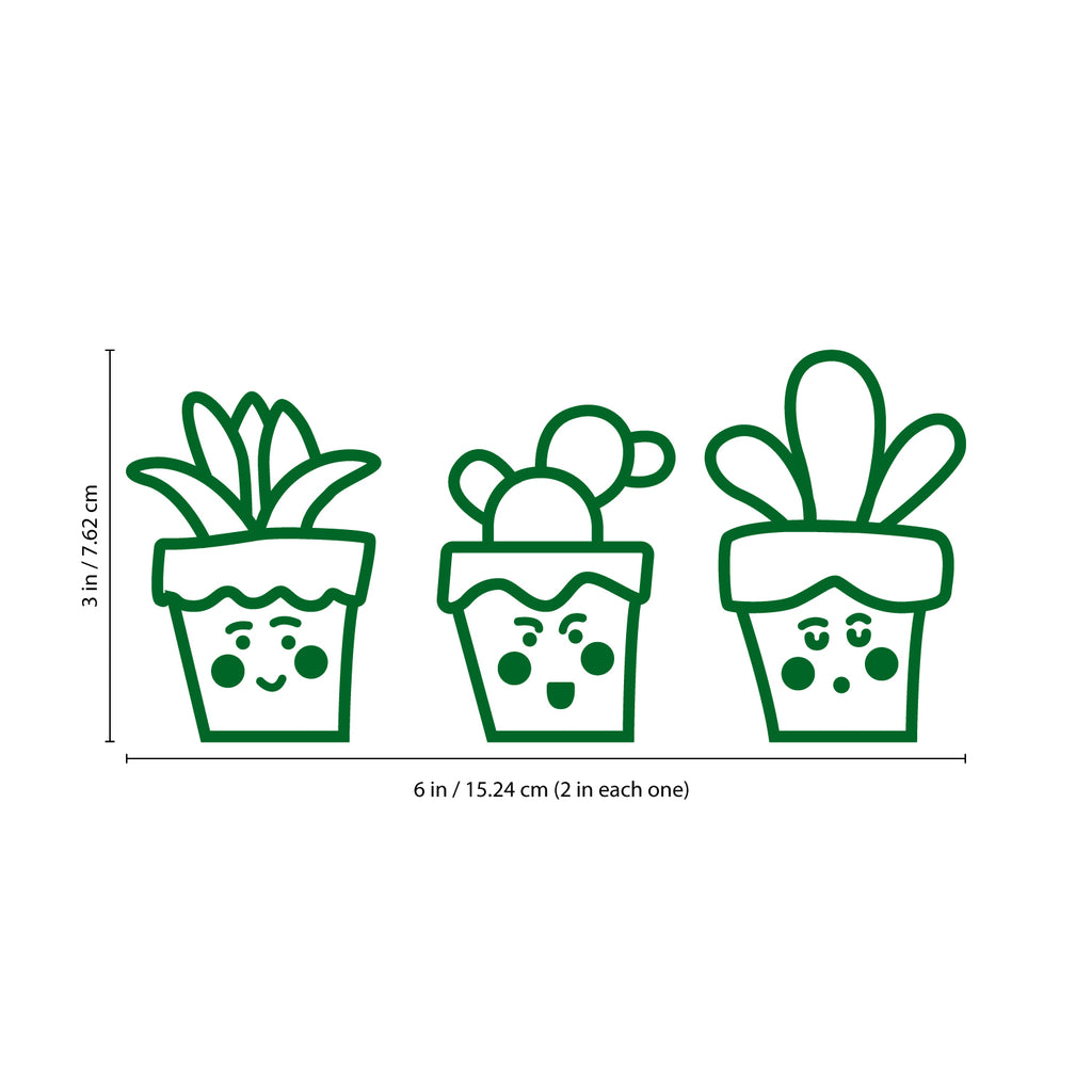 Set of 3 Vinyl Wall Art Decals - Tiny Cactus - Each - Fun Cute Stickers for Home Apartment Decal Old Wild West Laptop Skin Car Bumper Sticker Luggage Window Desk (Each; Green)