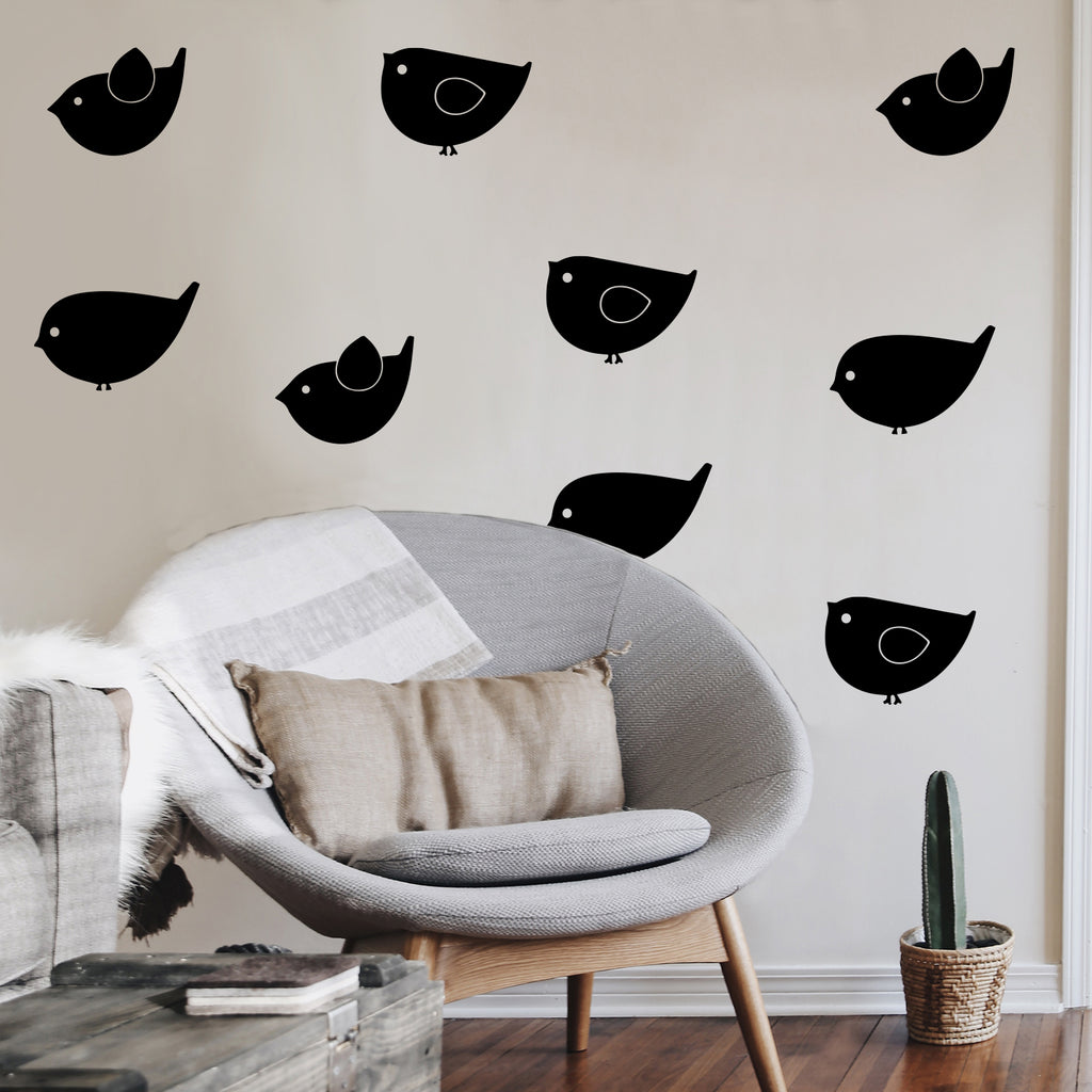 Set Of 9 Vinyl Wall Art Decal - Little Birds Set - From Each - Trendy Fun Lovely Design Sticker For Home Nursery Playroom Kids Room Daycare Classroom Baby Room Decor