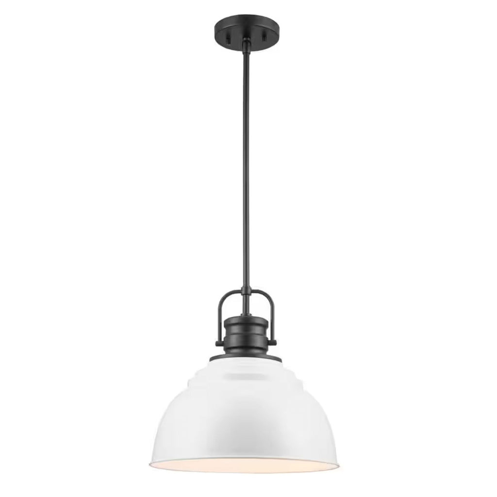 Shelston 13 in. 1-Light Black and White Farmhouse Pendant Light Fixture with Metal Shade - 1006672988