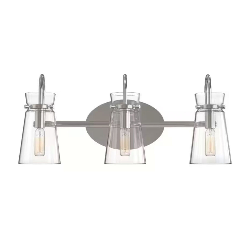 Vinton Place 22 in. 3-Light Brushed Nickel Bathroom Vanity Light with Clear Glass Shades - 1006347360