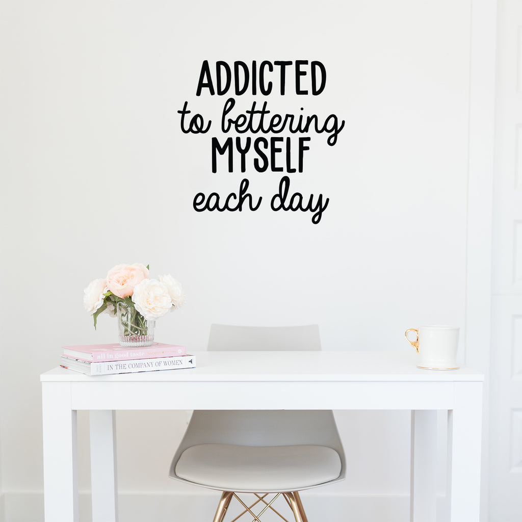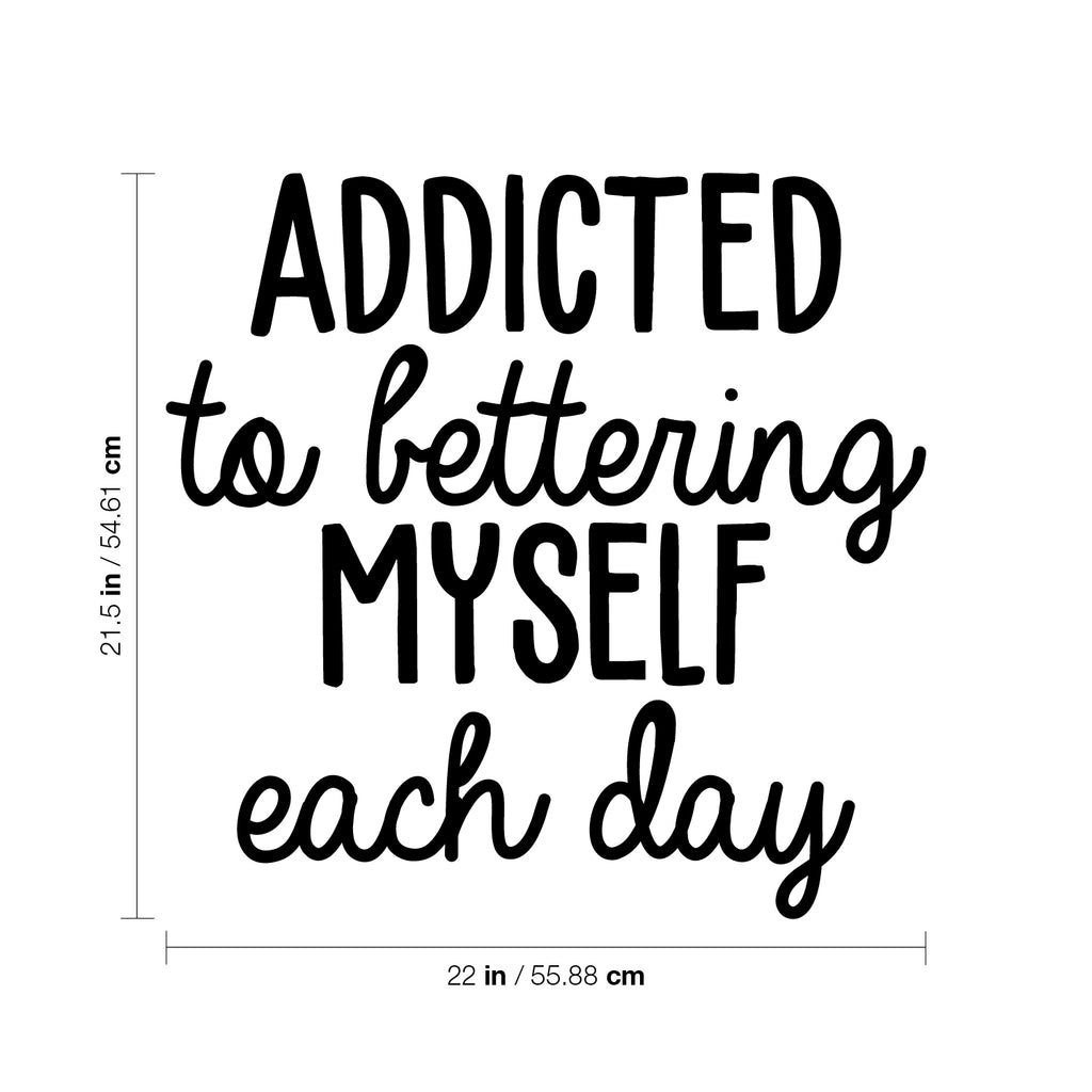 Vinyl Wall Art Decal - Addicted To Bettering My Self Each Day - 21. Trendy Motivational Optimistic Good Vibes Quote Sticker For Bedroom Closet Kids Room Playroom Office School Decor