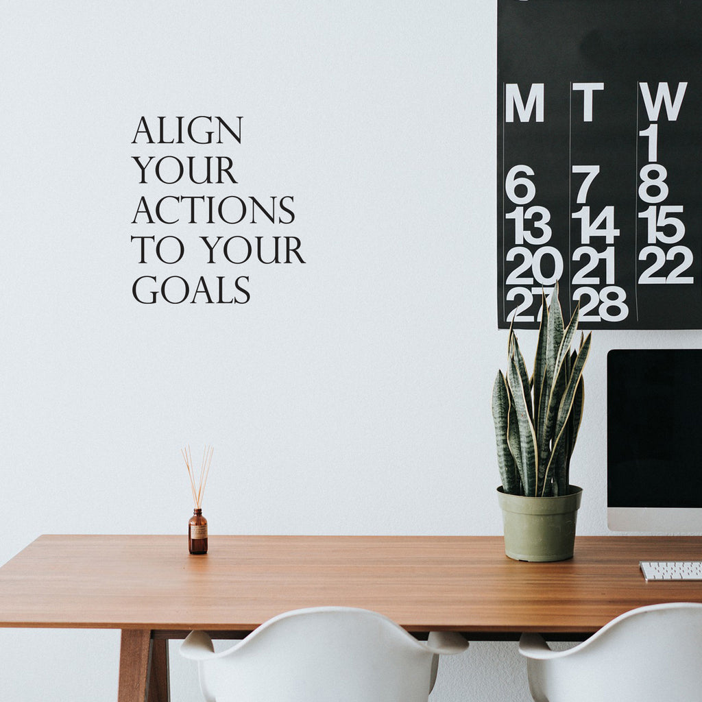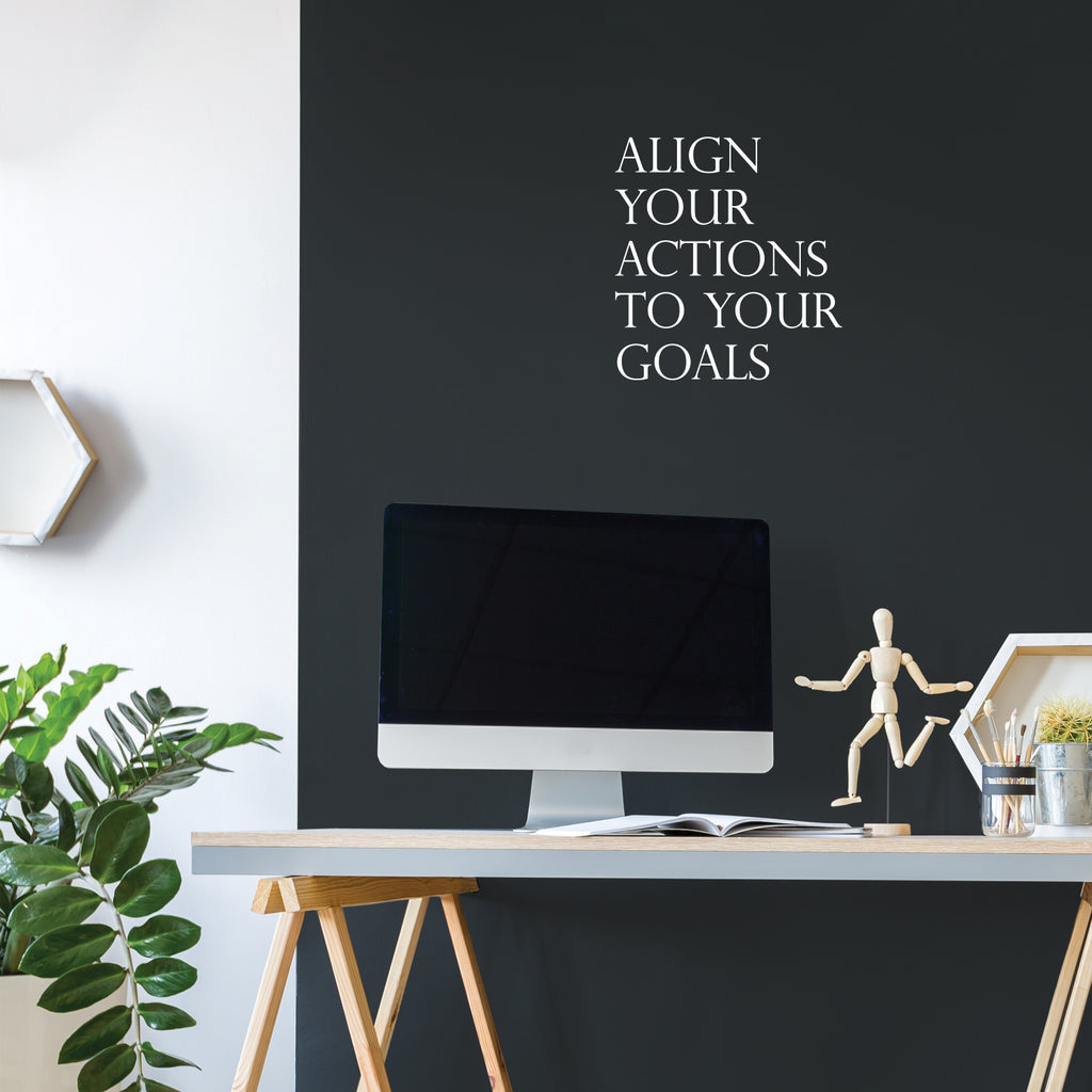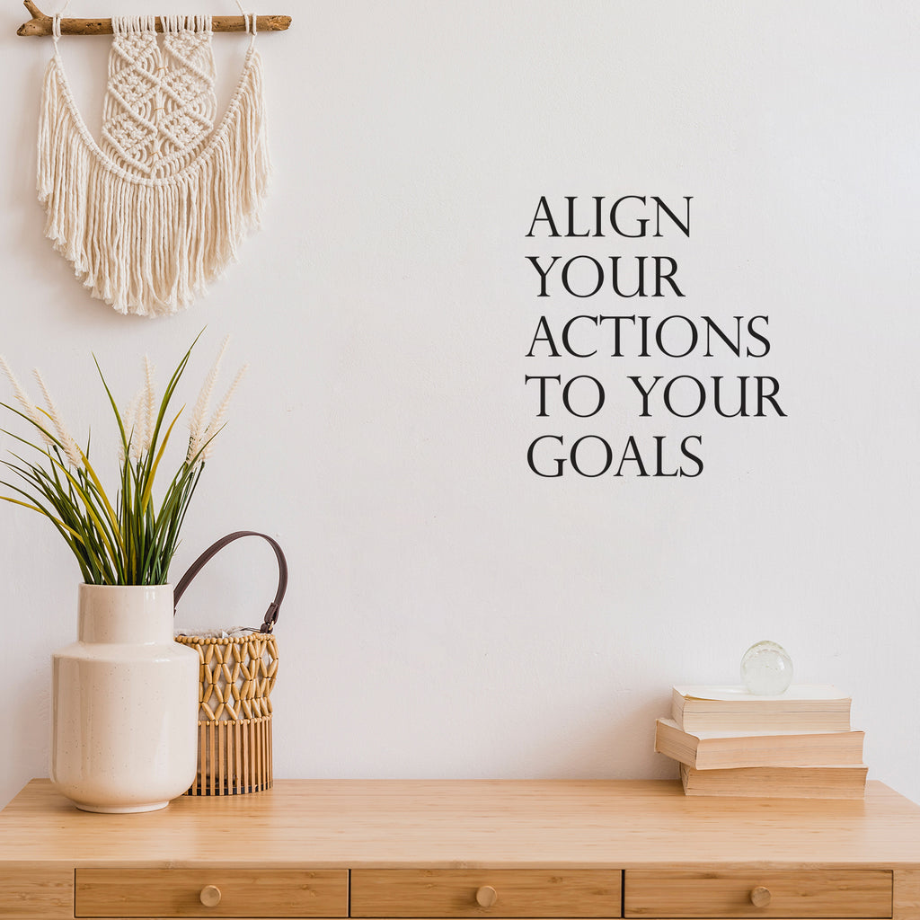 Vinyl Wall Art Decal - Align Your Actions To Your Goals - Modern Inspirational Lovely Optimistic Quote Sticker For Home Bedroom Closet Living Room Office Coffee Shop Decor