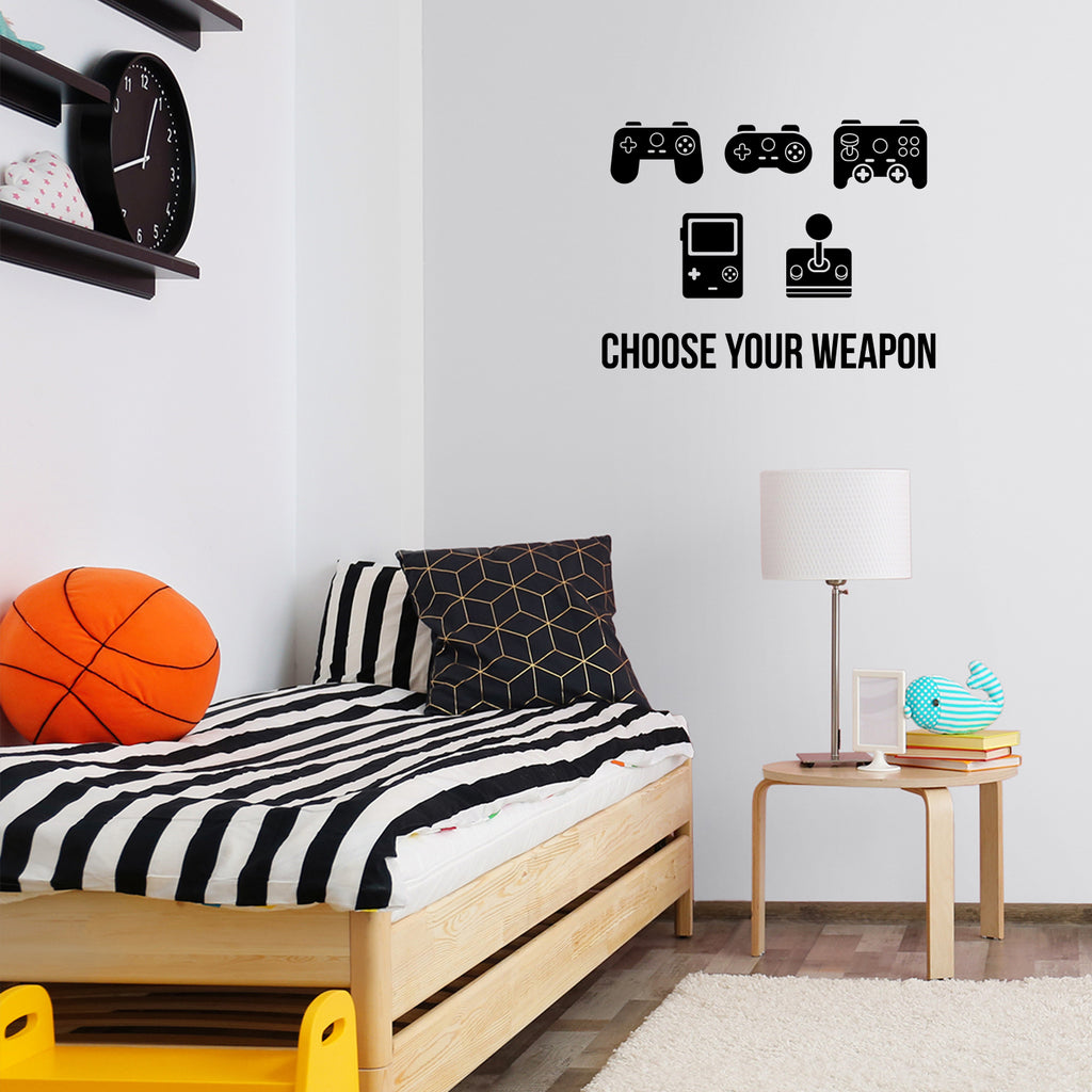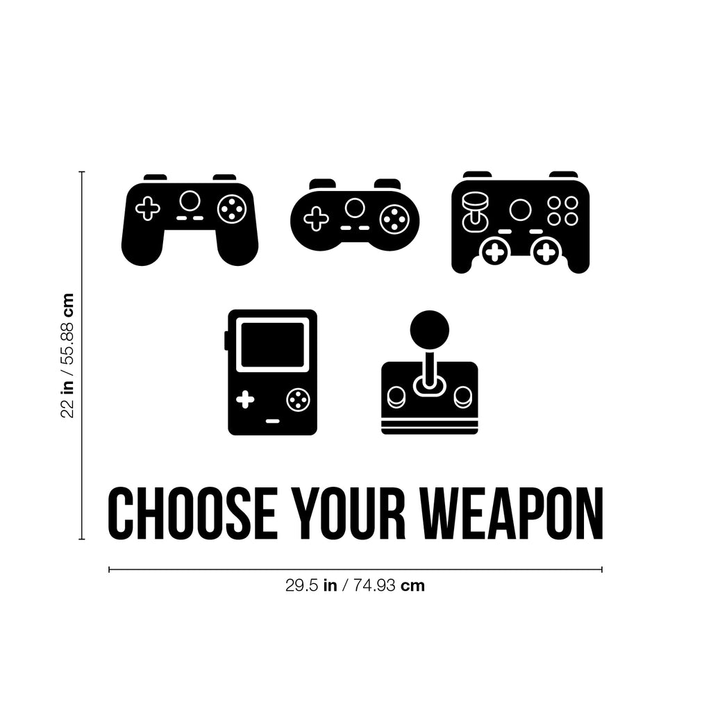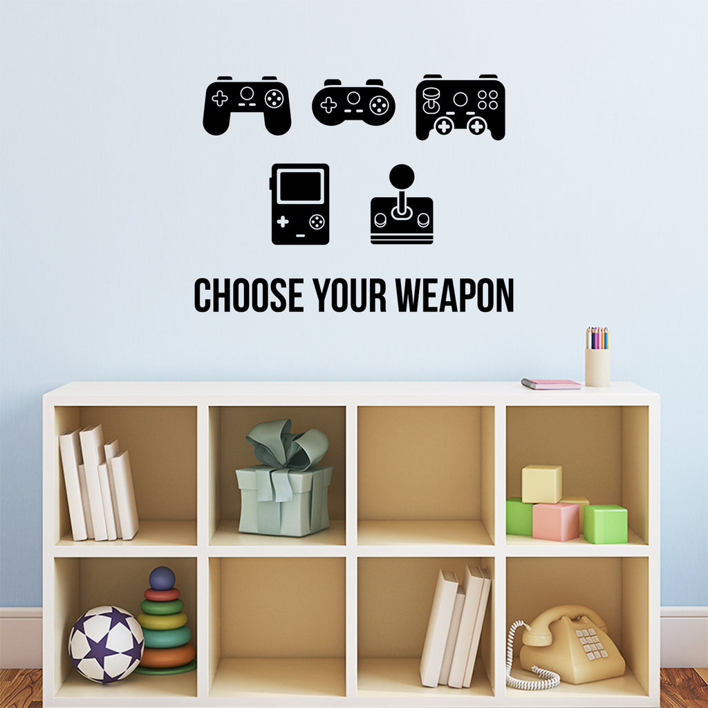 This awesome decal quote "Choose Your Weapon"; is the perfect touch for your home or playroom. Use it for your kids room; home; nursery or anywhere you want to bring some extra cute decoration. It's a vinyl sticker that is easy to put on any smooth and dry surface. Our modern designs don't just brighten up the room; but brighten up the day. Using top of the line vinyl across all of our production allows us to be the leaders in quality and design.