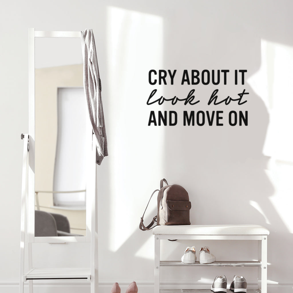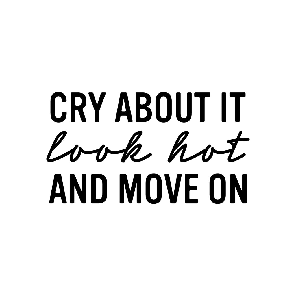 This awesome fun decal quote "Cry About It Look Hot And Move On"; is the perfect touch for your home. Use it for your dorm room; living room; bathroom or anywhere you want to bring some extra fun decoration. It's a vinyl sticker that is easy to put on any smooth and dry surface. Our modern designs don't just brighten up the room; but brighten up the day. Using top of the line vinyl across all of our production allows us to be the leaders in quality and design.
