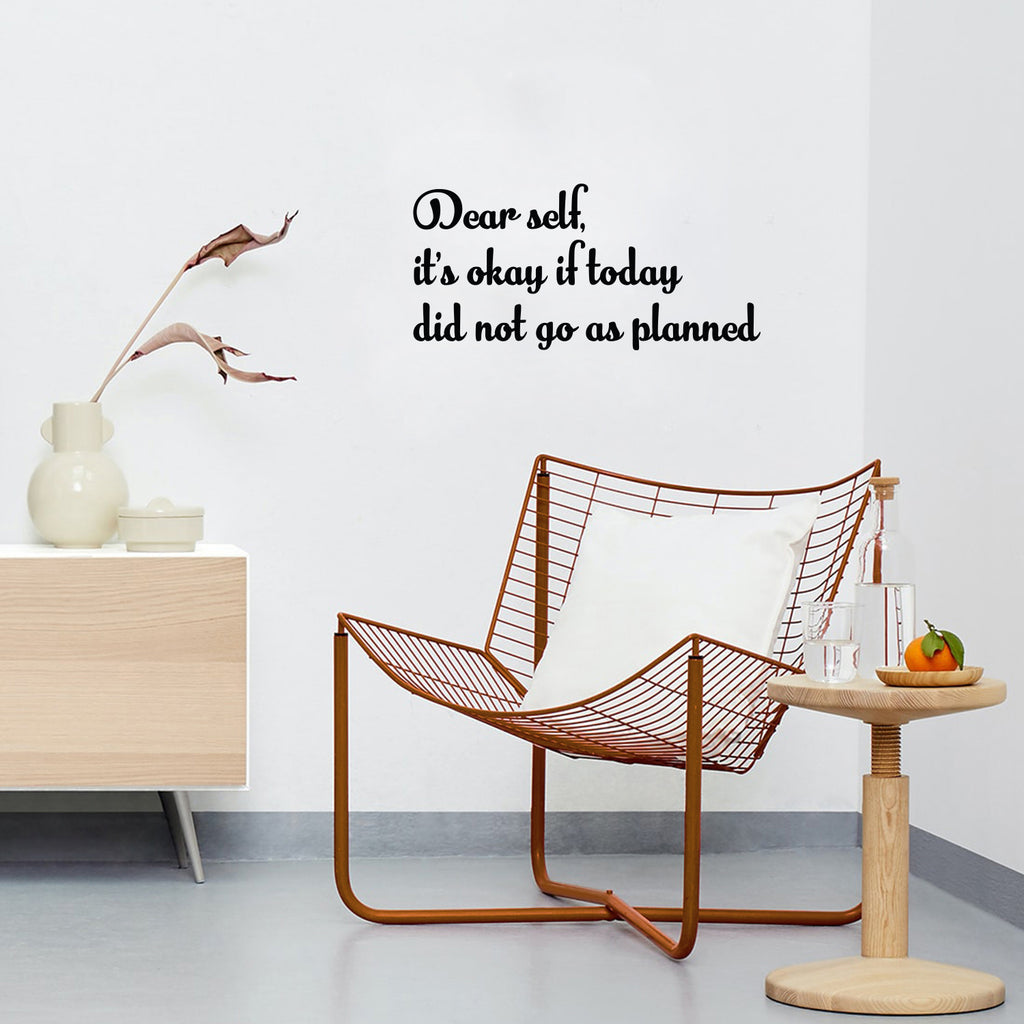 This awesome inspirational & positive decal quote "Dear Self; It's Okay If Today Did Not Go As Planned"; is the perfect touch for your home. Use it for your kids room; living room or anywhere you want to bring some extra decoration. It's a vinyl sticker that is easy to put on any smooth and dry surface. Our modern designs don't just brighten up the room; but brighten up the day. Using top of the line vinyl across all of our production allows us to be the leaders in quality and design.