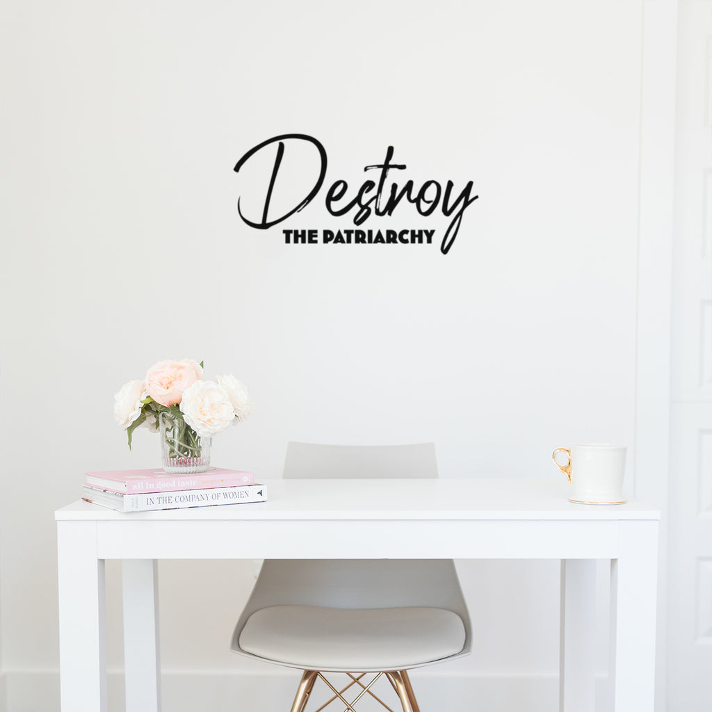 This awesome decal quote "Destroy The Patriarchy"; is the perfect touch for your home or apartment. Use it for your dorm room; home office or anywhere you want to bring some extra decoration. It's a vinyl sticker that is easy to put on any smooth and dry surface. Our modern designs don't just brighten up the room; but brighten up the day. Using top of the line vinyl across all of our production allows us to be the leaders in quality and design.