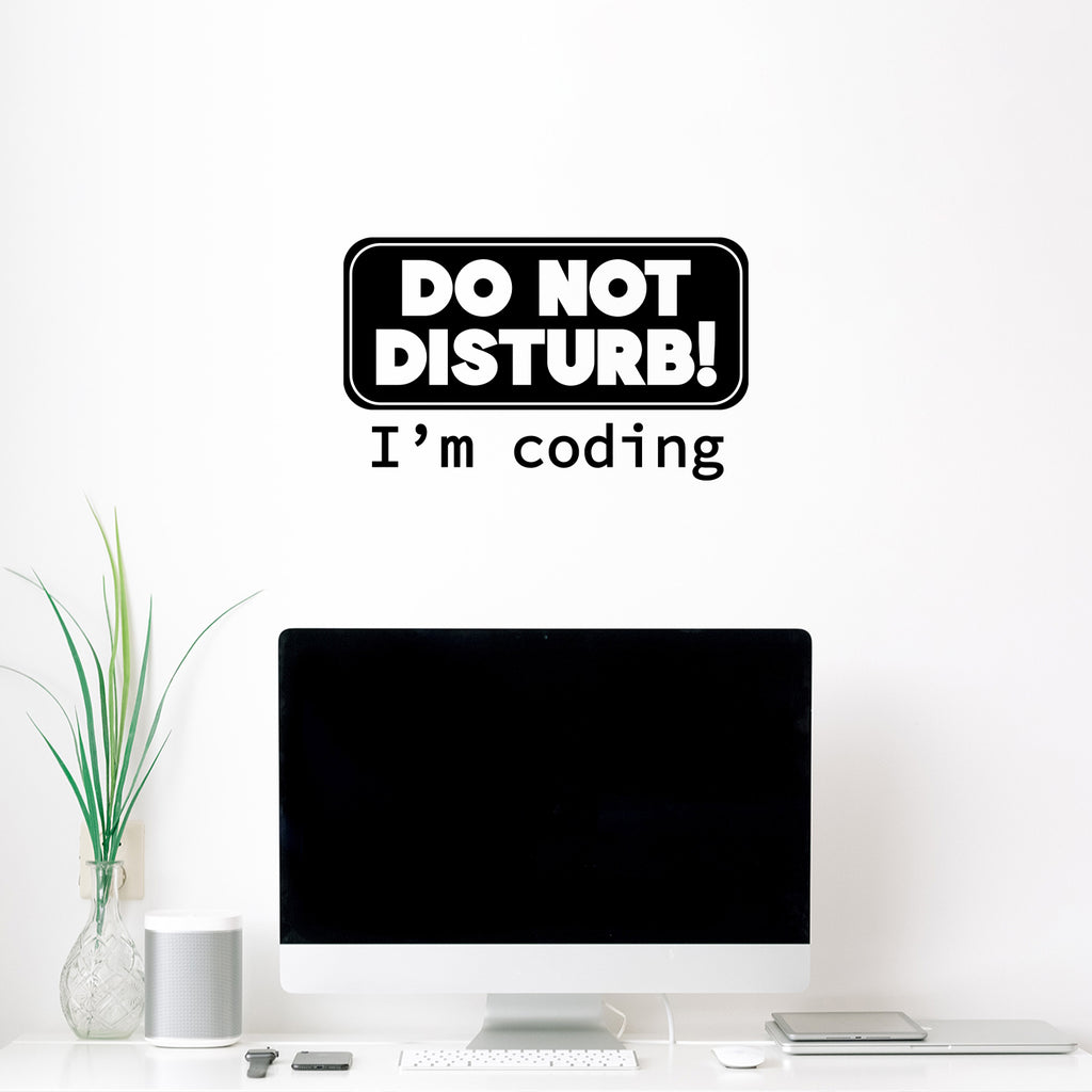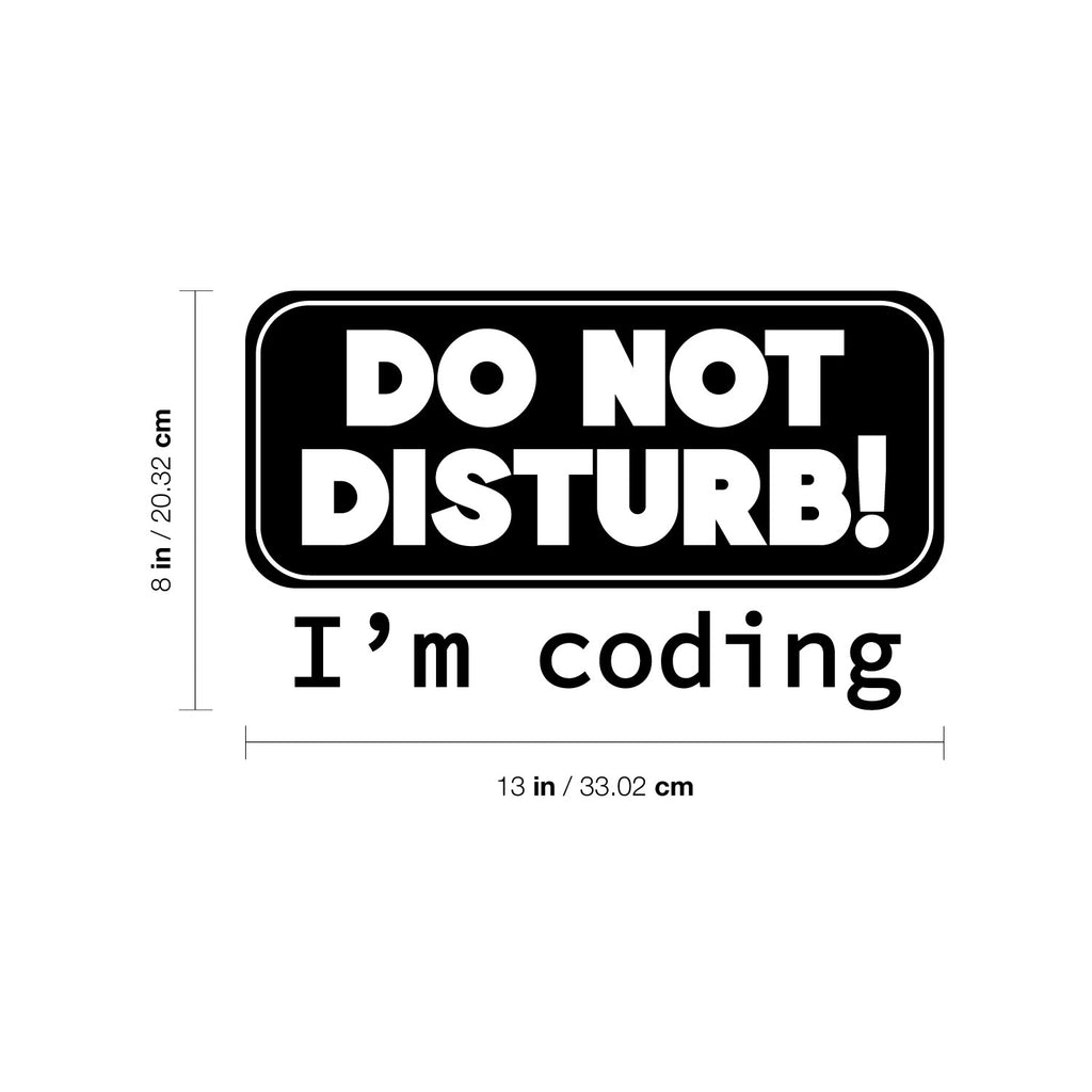 This great decal quote "Do Not Disturb I'm Coding"; is the perfect touch for your home. Use it for your kids room; living room or anywhere you want to bring some extra decoration. It's a vinyl sticker that is easy to put on any smooth and dry surface. Our modern designs don't just brighten up the room; but brighten up the day. Using top of the line vinyl across all of our production allows us to be the leaders in quality and design.