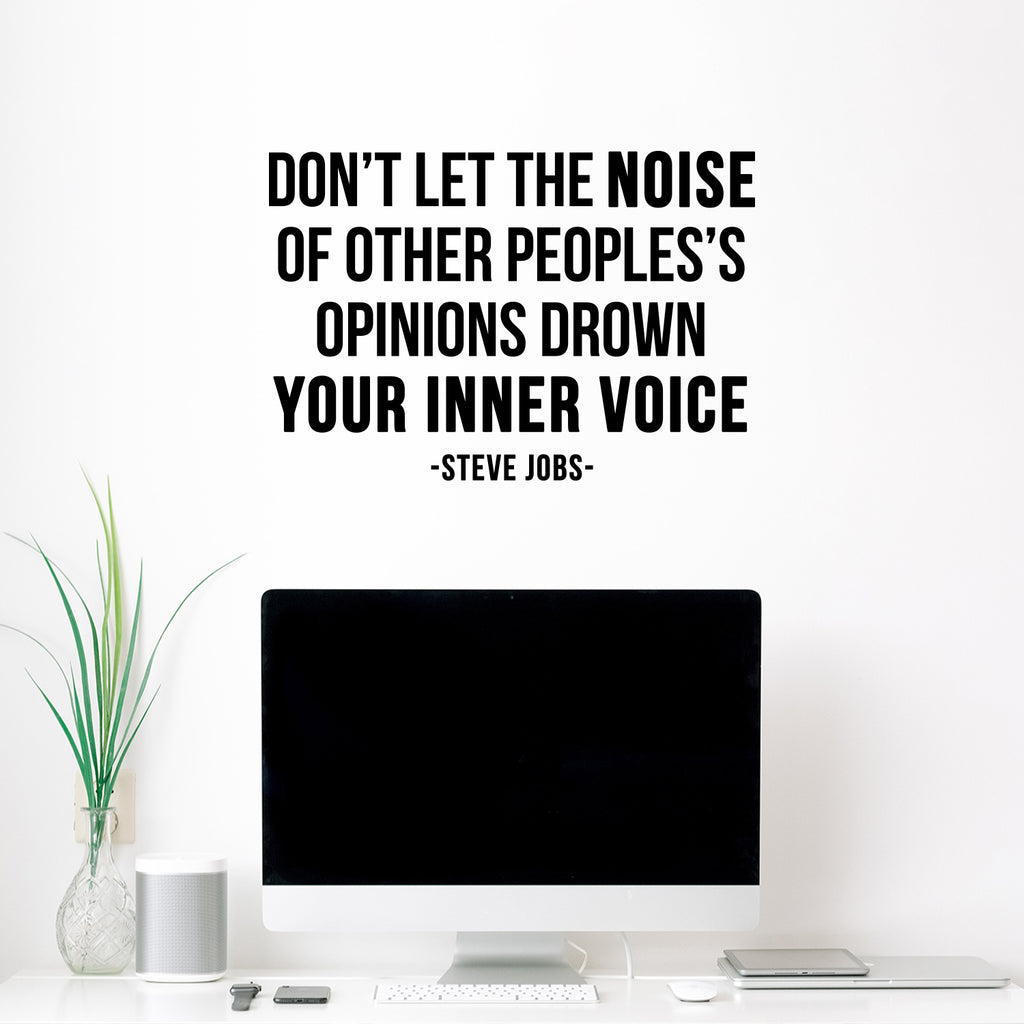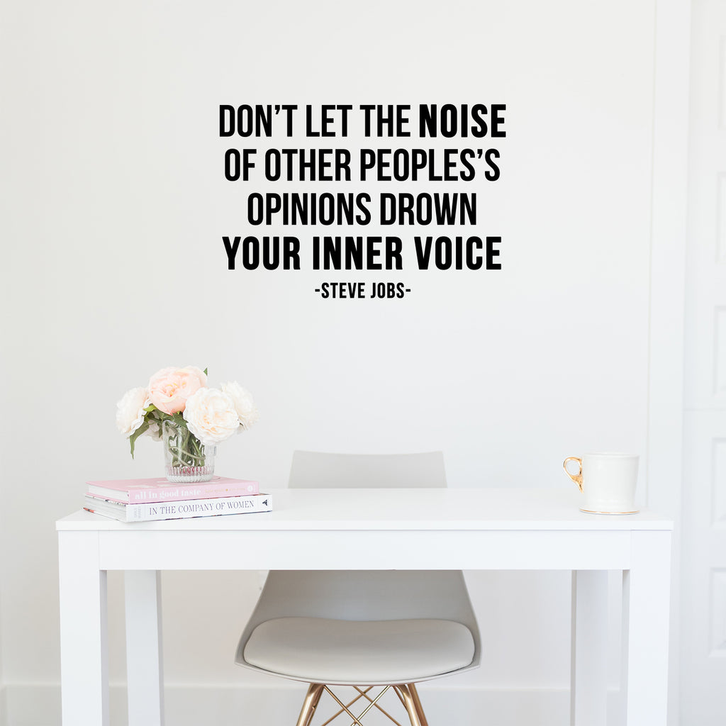 This awesome inspiring decal quote "Don't Let The Noise Of Other Peoples'"; is the perfect touch for your home or office. Use it for your bedroom; closet; classroom or anywhere you want to bring some extra positive decoration. It's a vinyl sticker that is easy to put on any smooth and dry surface. Our modern designs don't just brighten up the room; but brighten up the day. Using top of the line vinyl across all of our production allows us to be the leaders in quality and design.