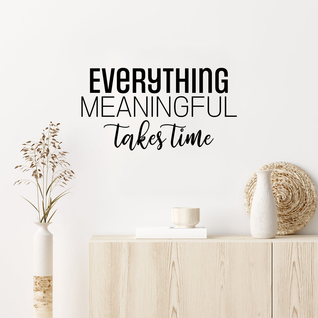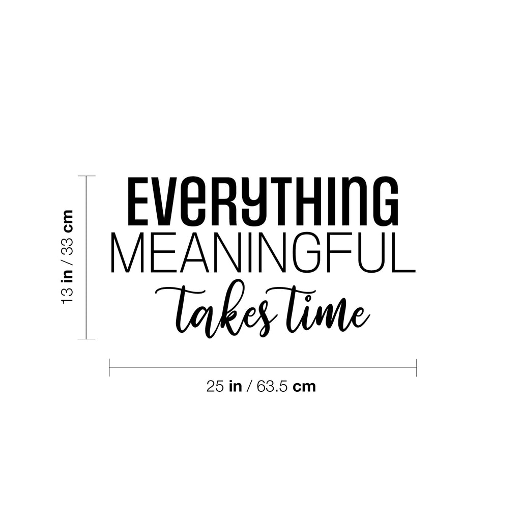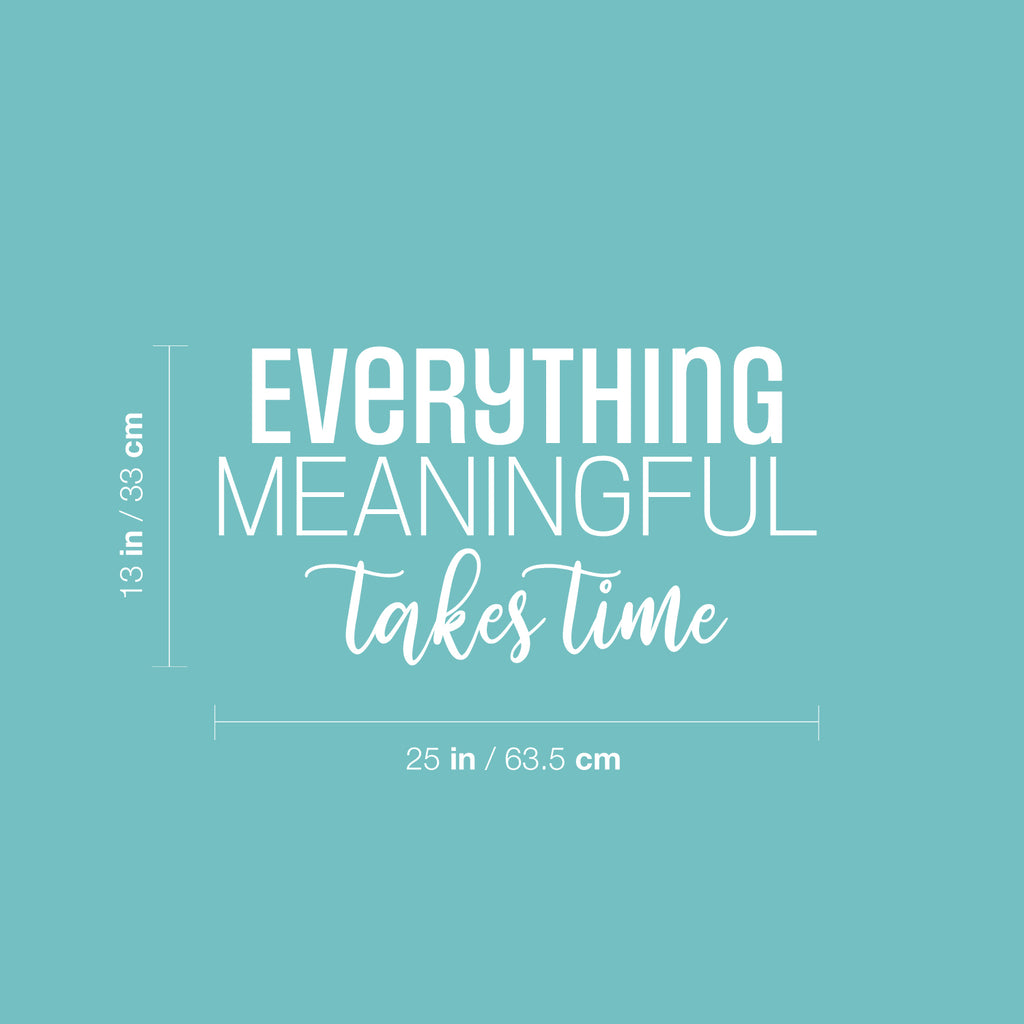 This awesome inspirational decal quote "Everything Meaningful Takes Time"; is the perfect touch for your home or classroom. Use it for your home school; living room; office or anywhere you want to bring some extra decoration. It's a vinyl sticker that is easy to put on any smooth and dry surface. Our modern designs don't just brighten up the room; but brighten up the day. Using top of the line vinyl across all of our production allows us to be the leaders in quality and design.