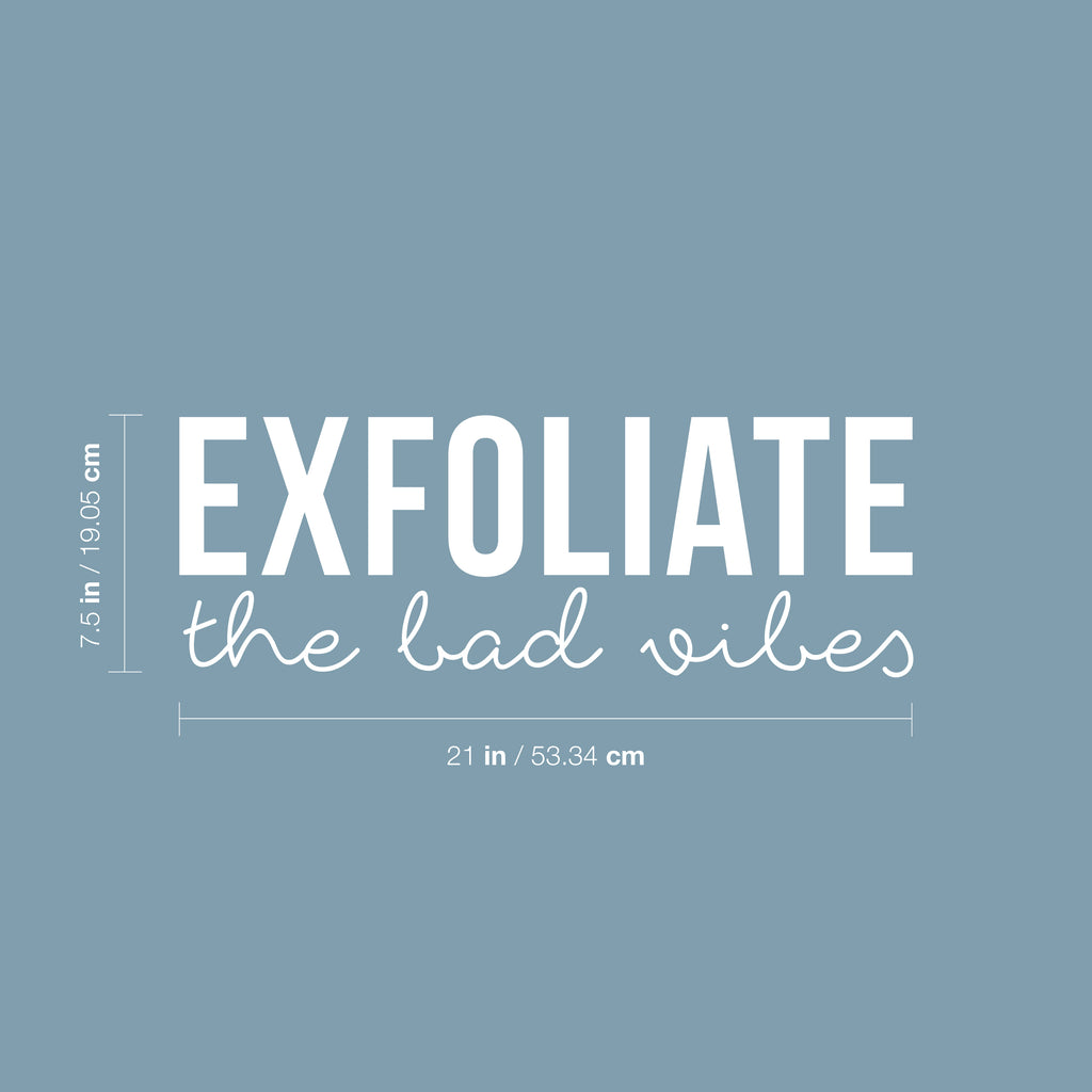 This chic & inspirational decal quote "Exfoliate The Bad Vibes"; is the perfect touch for your school or office. Use it for your living room; bathroom; business or anywhere you want to bring some extra positive decoration. It's a vinyl sticker that is easy to put on any smooth and dry surface. Our modern designs don't just brighten up the room; but brighten up the day. Using top of the line vinyl across all of our production allows us to be the leaders in quality and design.