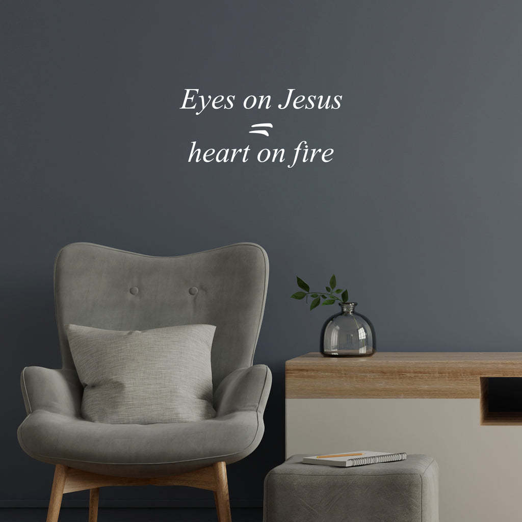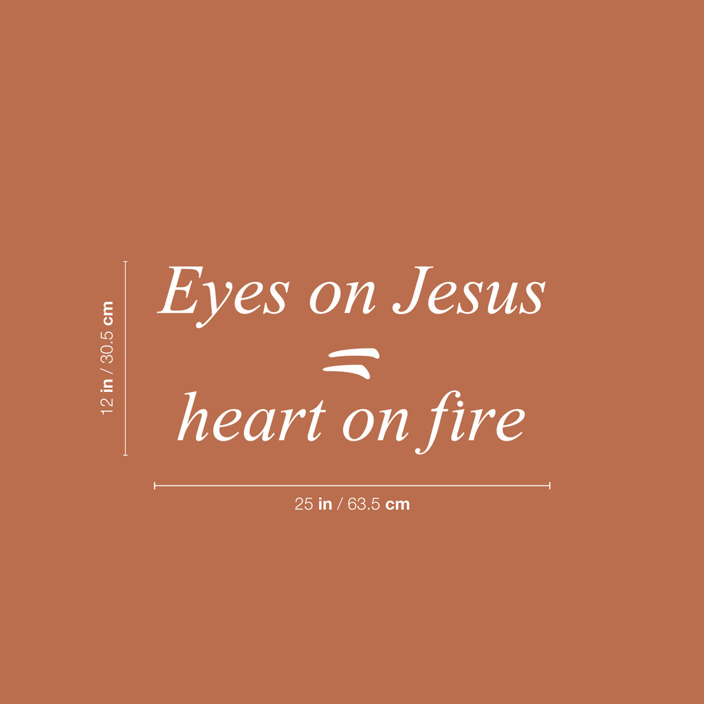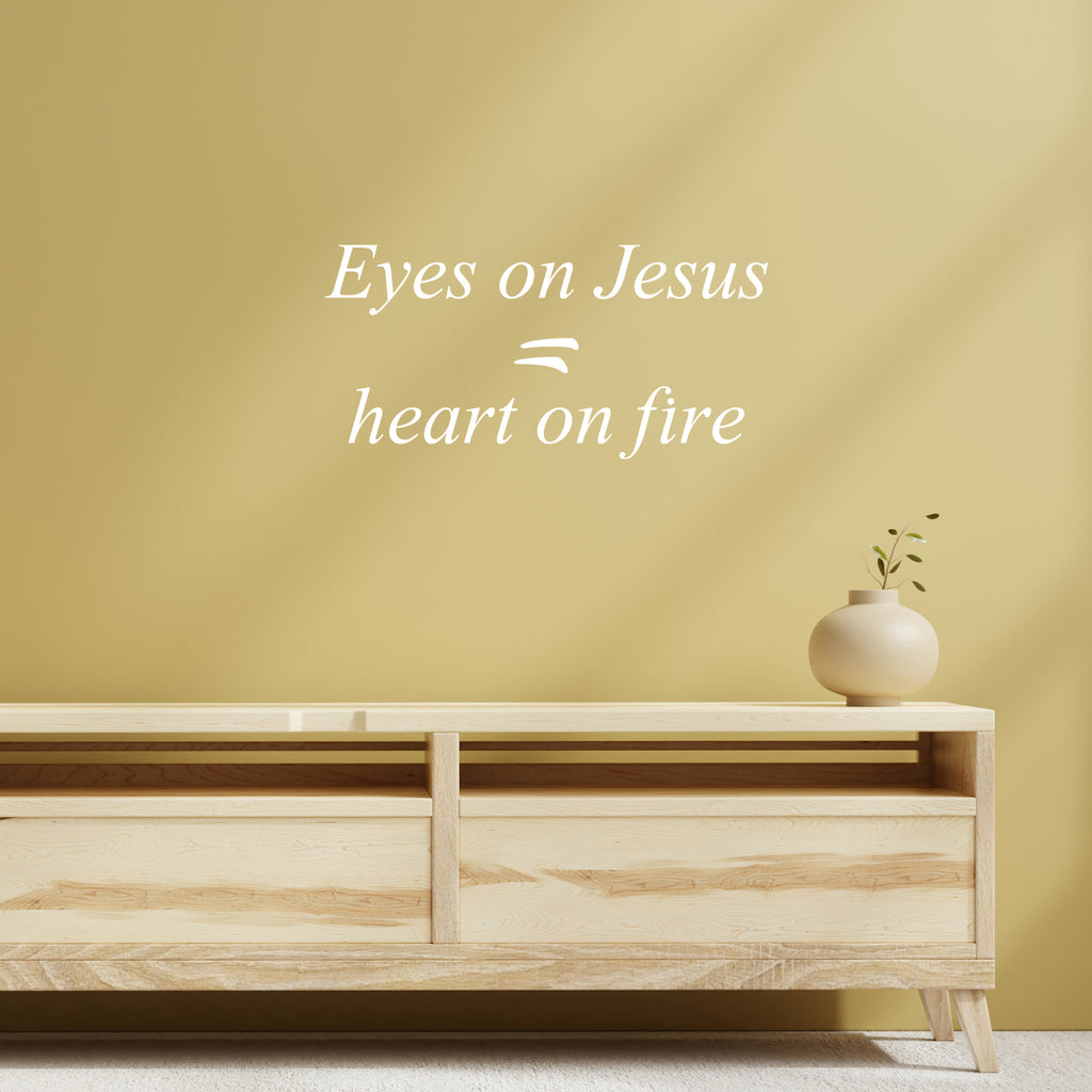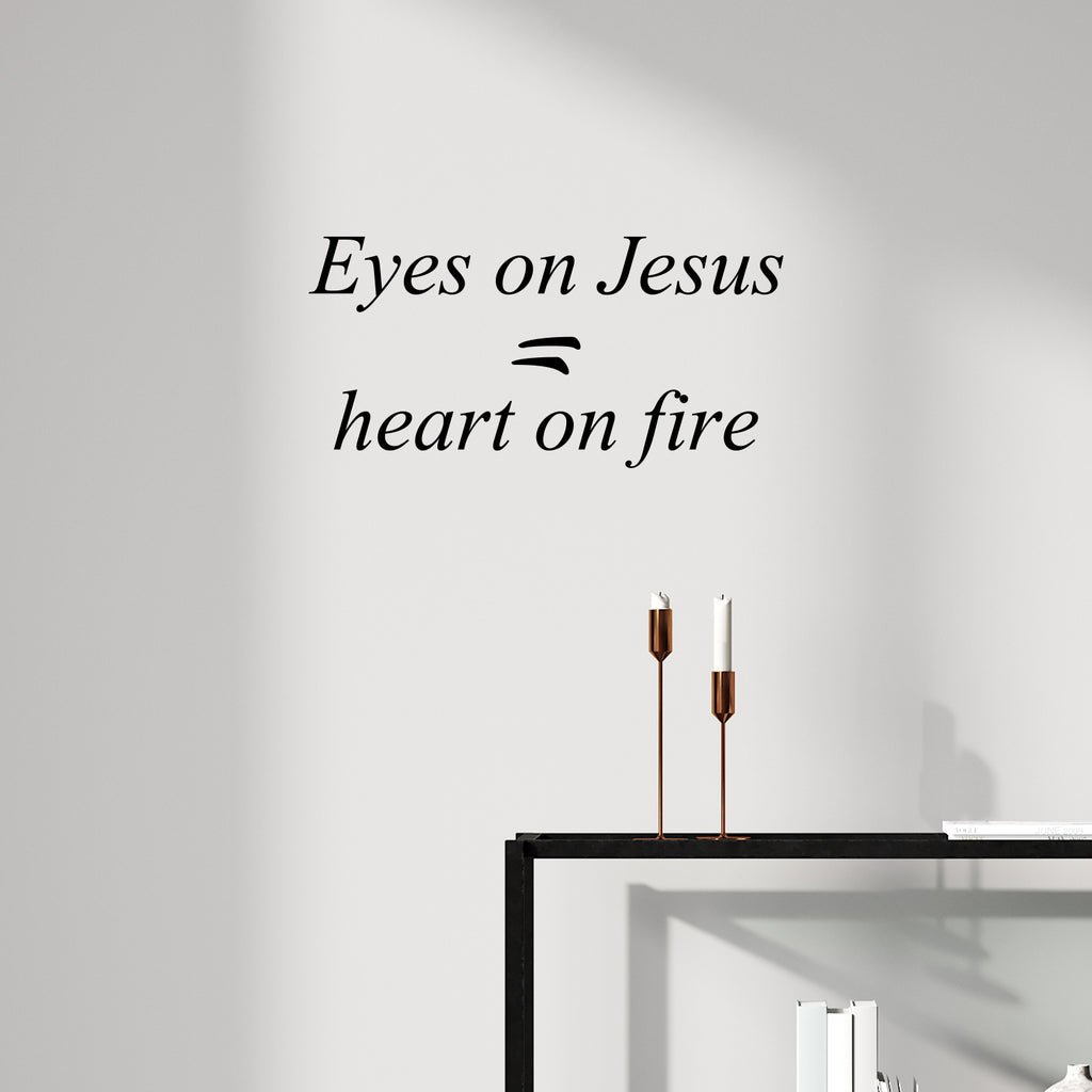 This spiritual decal quote "Eyes On Jesus Heart On Fire"; is the perfect touch for your home. Use it for your bedroom; closet; living room or anywhere you want to bring some extra cute decoration. It's a vinyl sticker that is easy to put on any smooth and dry surface. Our modern designs don't just brighten up the room; but brighten up the day. Using top of the line vinyl across all of our production allows us to be the leaders in quality and design.