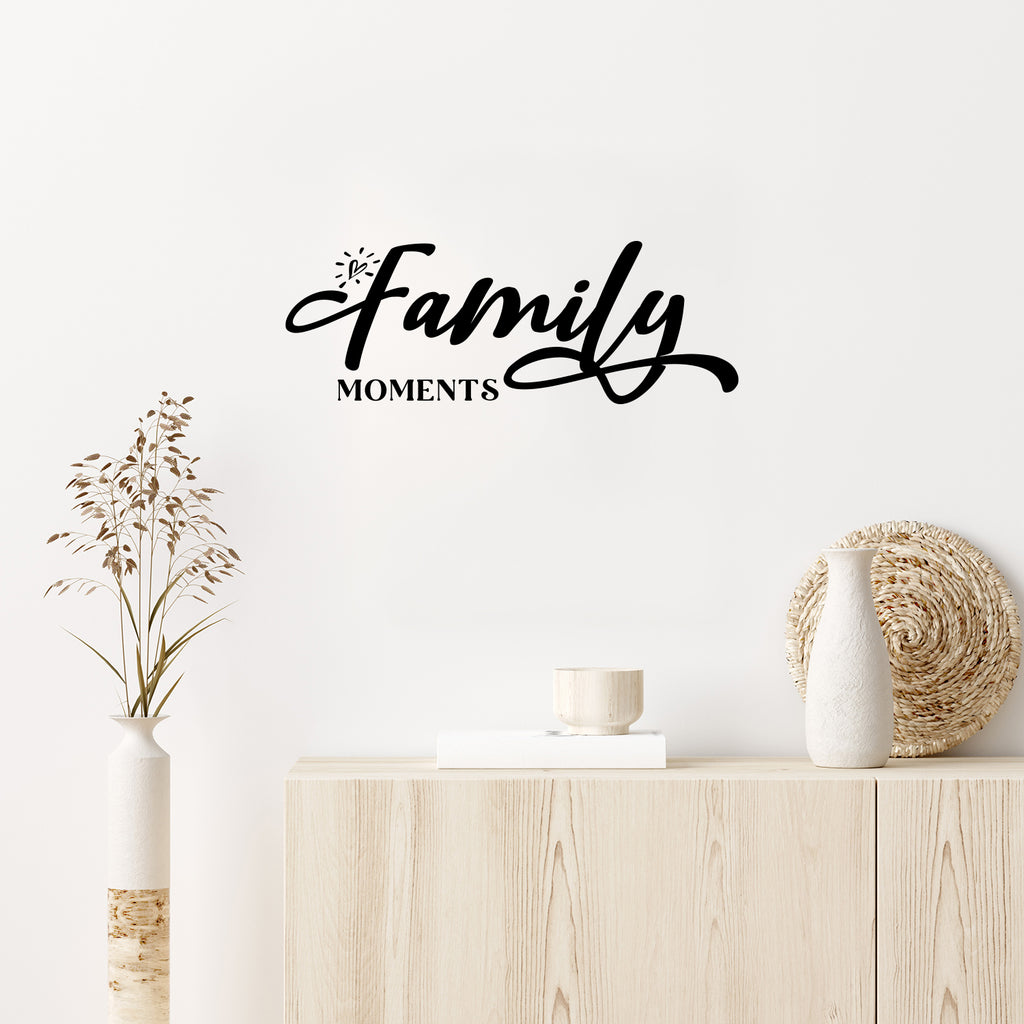 This cute & sweet decal quote "Family Moments"; is the perfect touch for your home or apartment. Use it for your bedroom; closet; or anywhere you want to bring some extra cute decoration. It's a vinyl sticker that is easy to put on any smooth and dry surface. Our modern designs don't just brighten up the room; but brighten up the day. Using top of the line vinyl across all of our production allows us to be the leaders in quality and design.