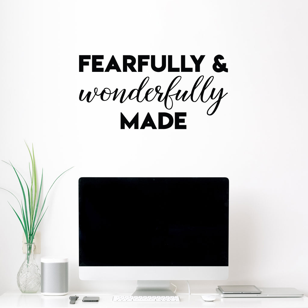 This awesome motivating decal quote "Fearfully And Wonderfully Made"; is the perfect touch for your home or school. Use it for your living room; playroom; kids room or anywhere you want to bring some extra cute decoration. It's a vinyl sticker that is easy to put on any smooth and dry surface. Our modern designs don't just brighten up the room; but brighten up the day. Using top of the line vinyl across all of our production allows us to be the leaders in quality and design.
