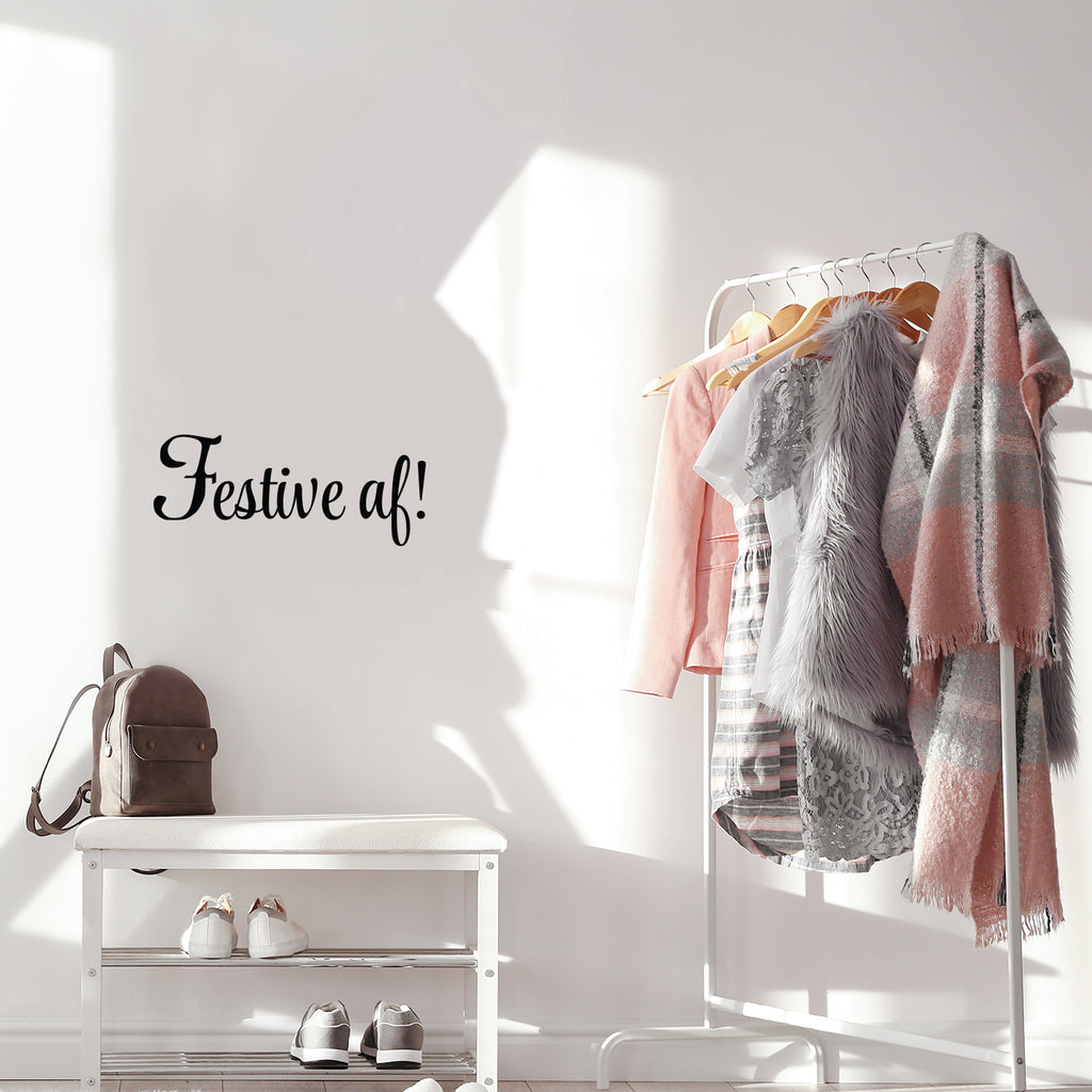 This great decal quote "Festive AF!"; is the perfect touch for your home. Use it for your kids room; living room or anywhere you want to bring some extra decoration. It's a vinyl sticker that is easy to put on any smooth and dry surface. Our modern designs don't just brighten up the room; but brighten up the day. Using top of the line vinyl across all of our production allows us to be the leaders in quality and design.