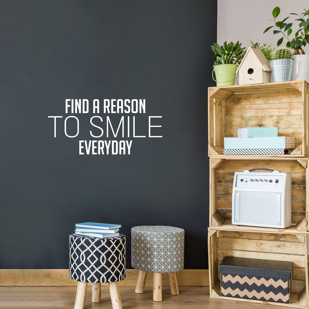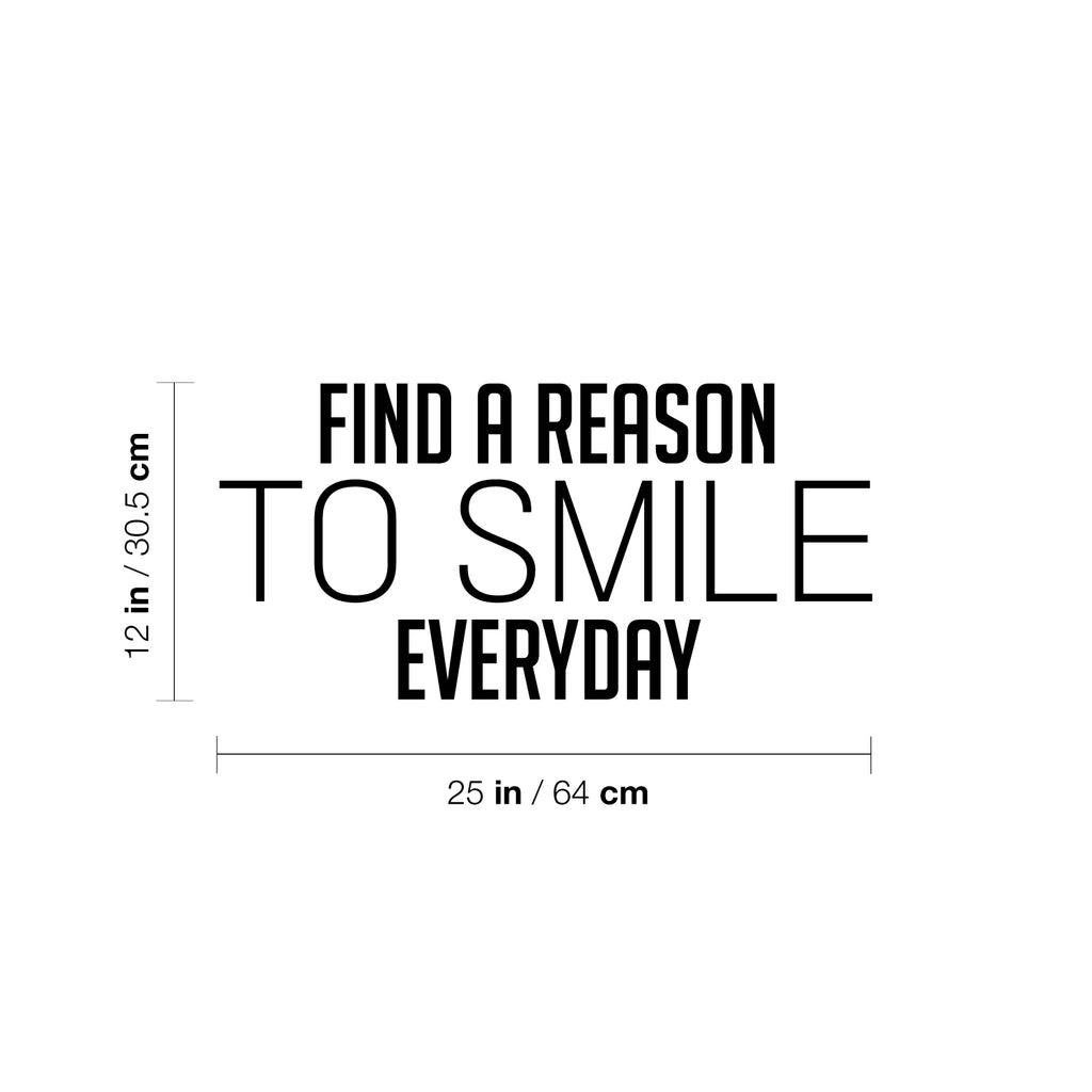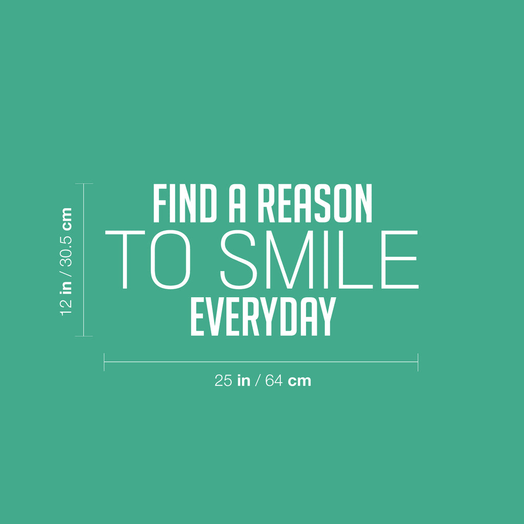 This great decal quote "Find A Reason To Smile Everyday"; is the perfect touch for your home. Use it for your kids room; living room or anywhere you want to bring some extra decoration. It's a vinyl sticker that is easy to put on any smooth and dry surface. Our modern designs don't just brighten up the room; but brighten up the day. Using top of the line vinyl across all of our production allows us to be the leaders in quality and design.
