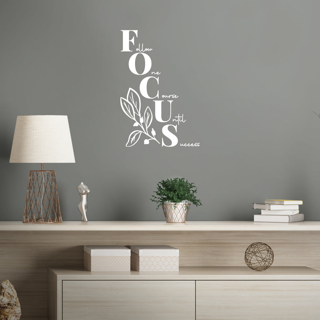 This awesome inspirational decal quote "FOCUS " is the perfect touch for your home or school. Use it for your closet; living room; coffee shop or anywhere you want to bring some extra positive decoration. It's a vinyl sticker that is easy to put on any smooth and dry surface. Our modern designs don't just brighten up the room; but brighten up the day. Using top of the line vinyl across all of our production allows us to be the leaders in quality and design.