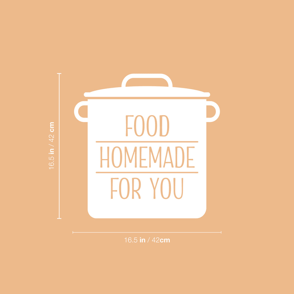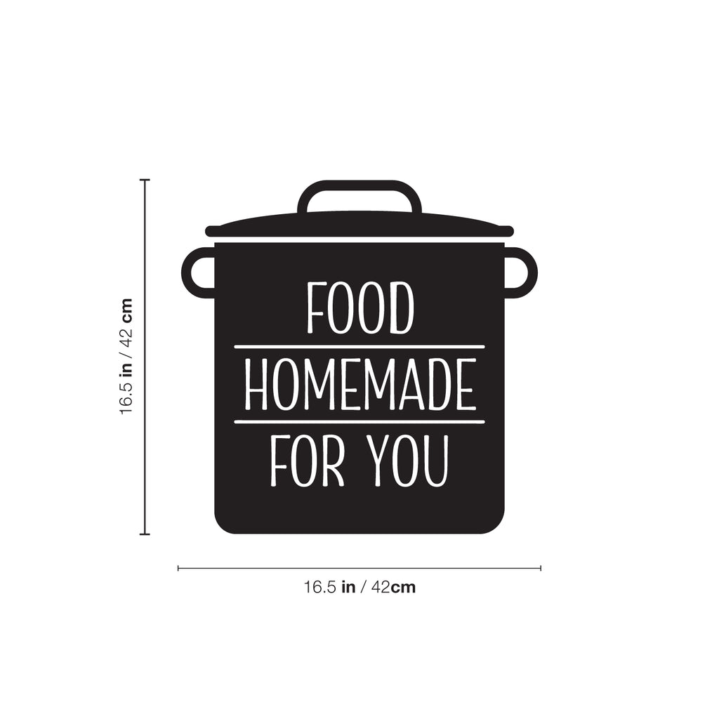 This decal quote "Food Homemade For You"; is the perfect touch for your kitchen or shopfront. Use it for your dining room; restaurant; kitchen or anywhere you want to bring some extra fun decoration. It's a vinyl sticker that is easy to put on any smooth and dry surface. Our modern designs don't just brighten up the room; but brighten up the day. Using top of the line vinyl across all of our production allows us to be the leaders in quality and design.