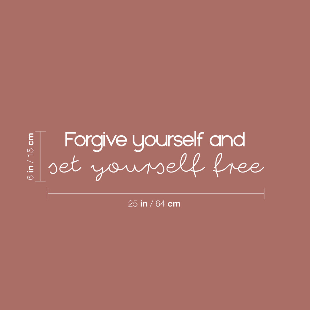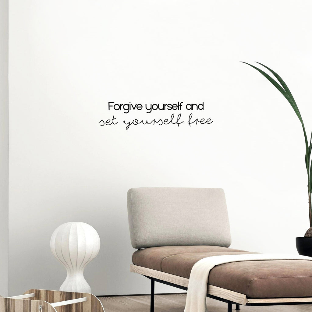 This great decal quote "Forgive Yourself And Set Yourself Free"; is the perfect touch for your home. Use it for your kids room; living room or anywhere you want to bring some extra decoration. It's a vinyl sticker that is easy to put on any smooth and dry surface. Our modern designs don't just brighten up the room; but brighten up the day. Using top of the line vinyl across all of our production allows us to be the leaders in quality and design.