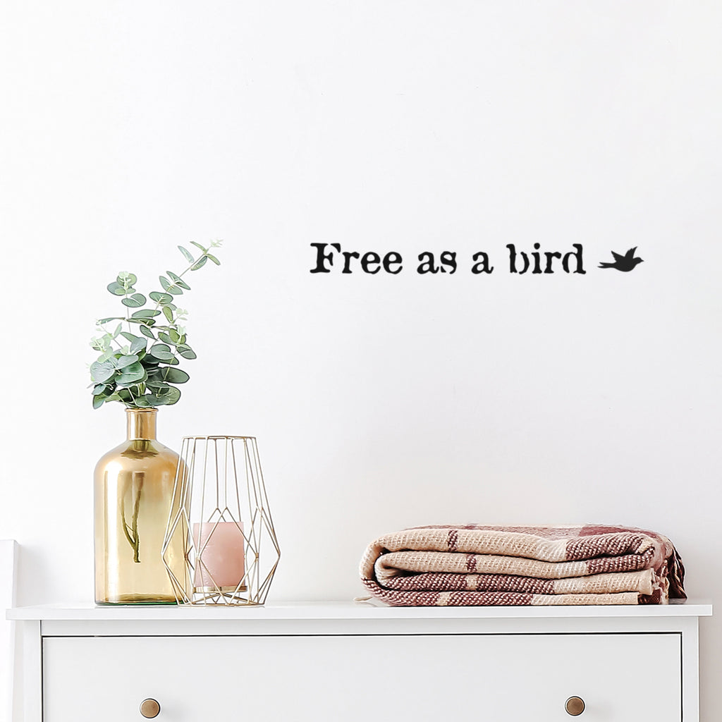 This awesome motivational & positive decal quote "Free As A Bird ??"; is the perfect touch for your home or office. Use it for your bedroom; closet ; classroom or anywhere you want to bring some extra positive decoration. It's a vinyl sticker that is easy to put on any smooth and dry surface. Our modern designs don't just brighten up the room; but brighten up the day. Using top of the line vinyl across all of our production allows us to be the leaders in quality and design.