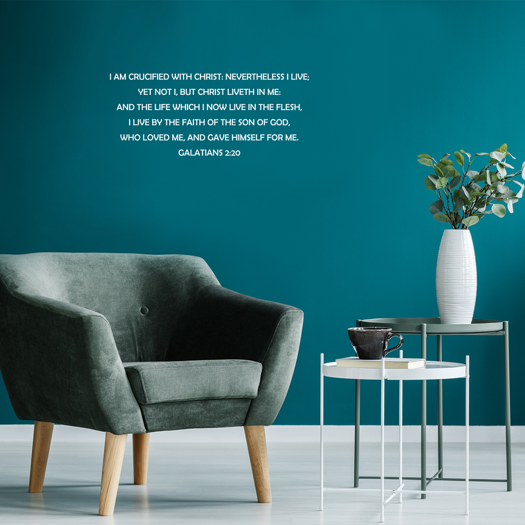 Vinyl Wall Art Decal - Galatians 2:20 I Am Crucified With Christ - Modern Inspirational Religious Bible Passage Quote For Home Bedroom Office Church Decoration Sticker