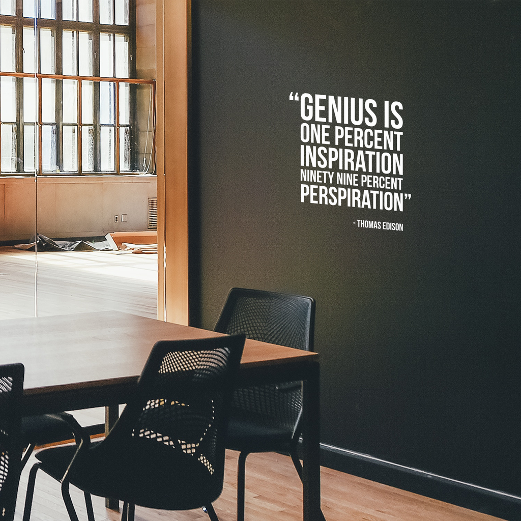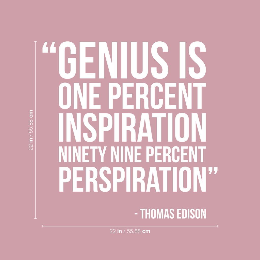 This awesome inspirational decal quote "Genius Is One Percent Inspiration Ninety Nine Percent Perspiration"; is the perfect touch for your home or apartment. Use it for your living room; bedroom; home office or anywhere you want to bring some extra decoration. It's a vinyl sticker that is easy to put on any smooth and dry surface. Our modern designs don't just brighten up the room; but brighten up the day. Using top of the line vinyl across all of our production allows us to be the leaders in quality and design.