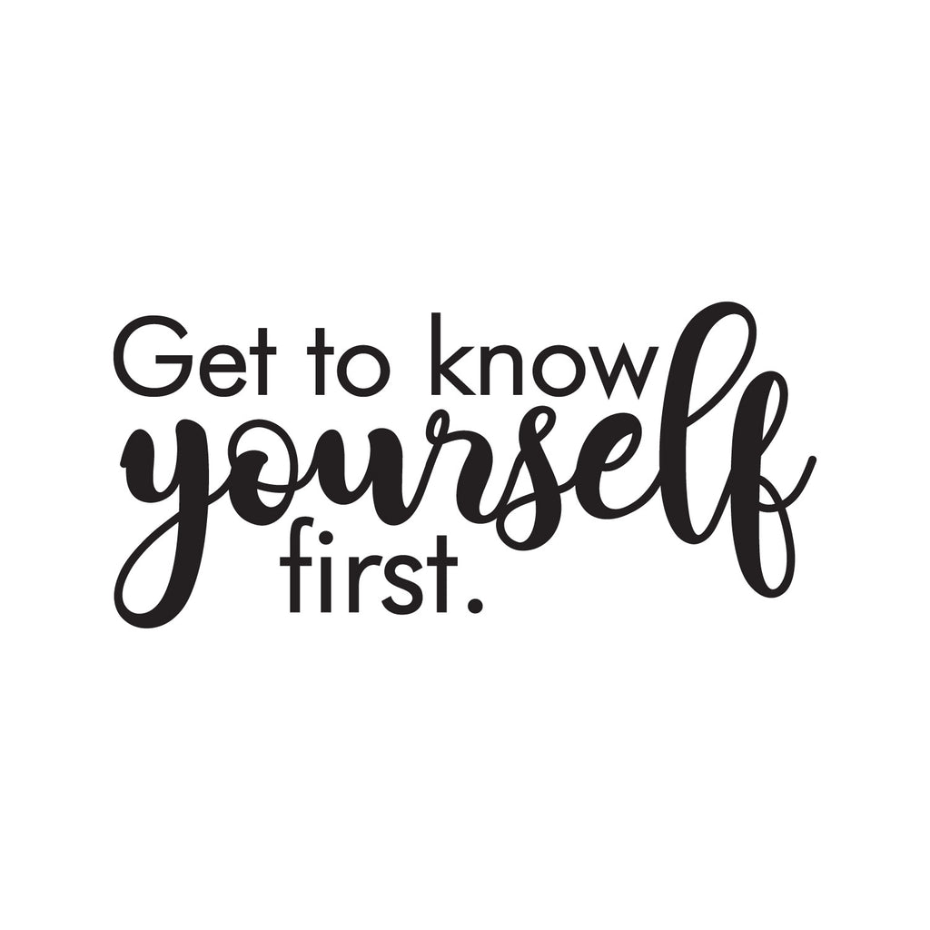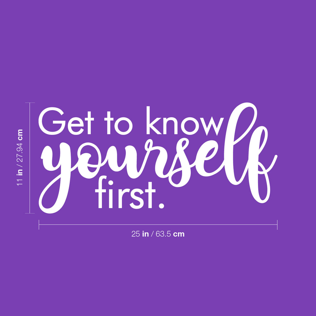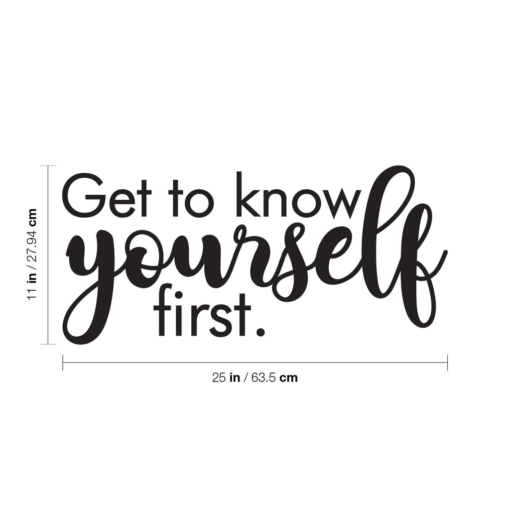 Vinyl Wall Art Decal - Get To Know Yourself First - Inspirational Trendy Lovely Self Esteem Quote Sticker For Bedroom Living Room Office Spa Wellness Center Decor