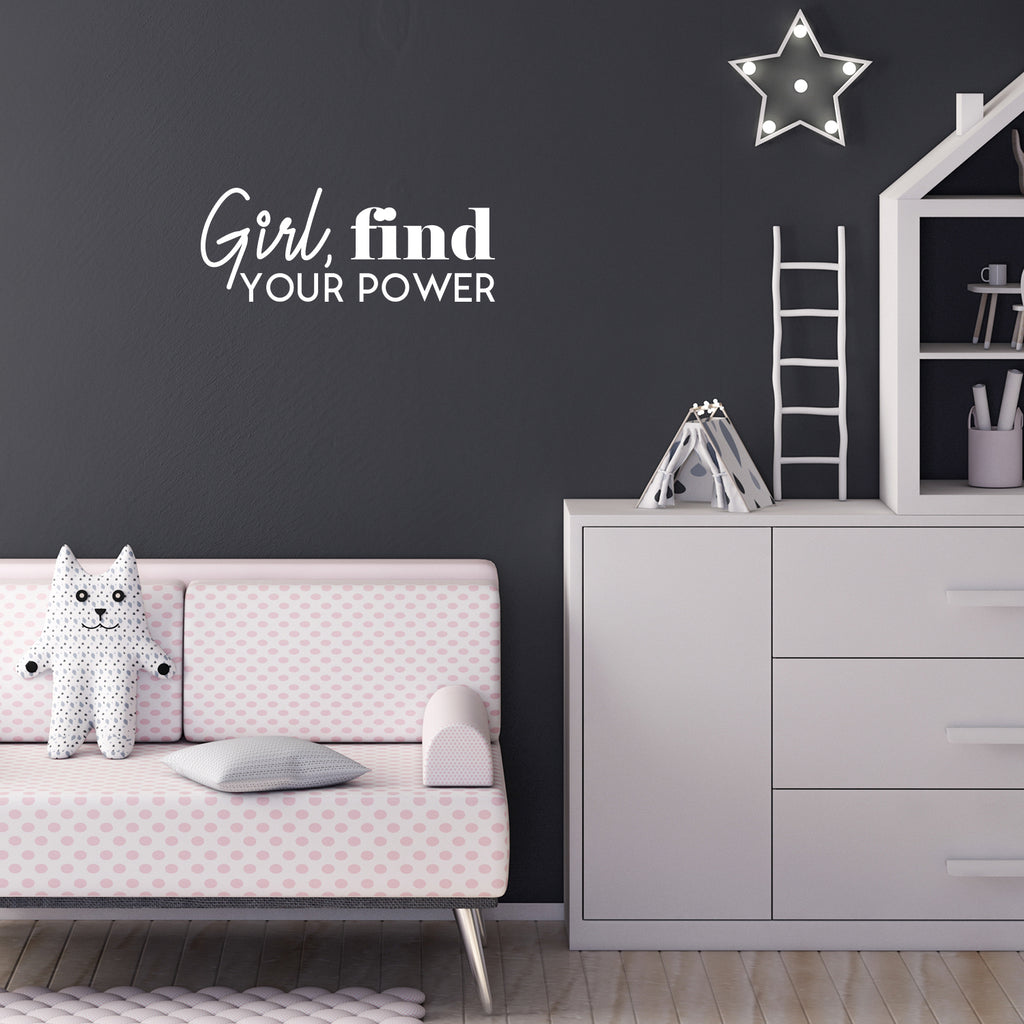 This awesome girly & optimistic decal quote "Girl; Find Your Power"; is the perfect touch for your home or office. Use it for your bedroom; girls room or anywhere you want to bring some extra cute decoration. It's a vinyl sticker that is easy to put on any smooth and dry surface. Our modern designs don't just brighten up the room; but brighten up the day. Using top of the line vinyl across all of our production allows us to be the leaders in quality and design.