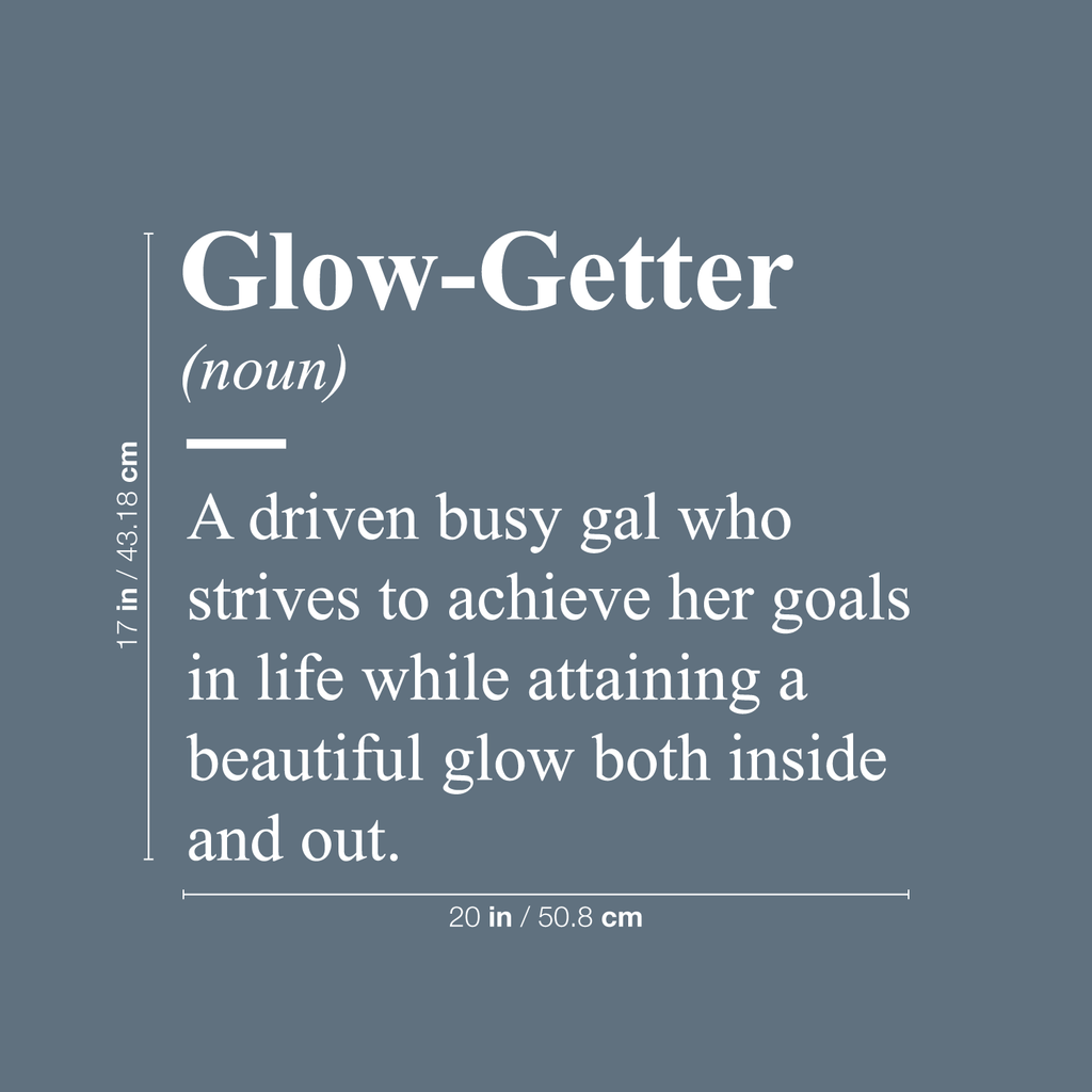 This inspirational "Glow Getter A driven busy gal who strives to achieve her goals in life while attaining a beautiful glow both inside and out" wall art decal is the perfect touch for your home. Use it for your bedroom; living room; or anywhere you want to bring some extra decoration. It's a vinyl sticker that is easy to put on almost any smooth and dry surface. Our modern designs don't just brighten up the room; but brighten up the day. Using top of the line vinyl across all of our production allows us to be the leaders in quality and design.