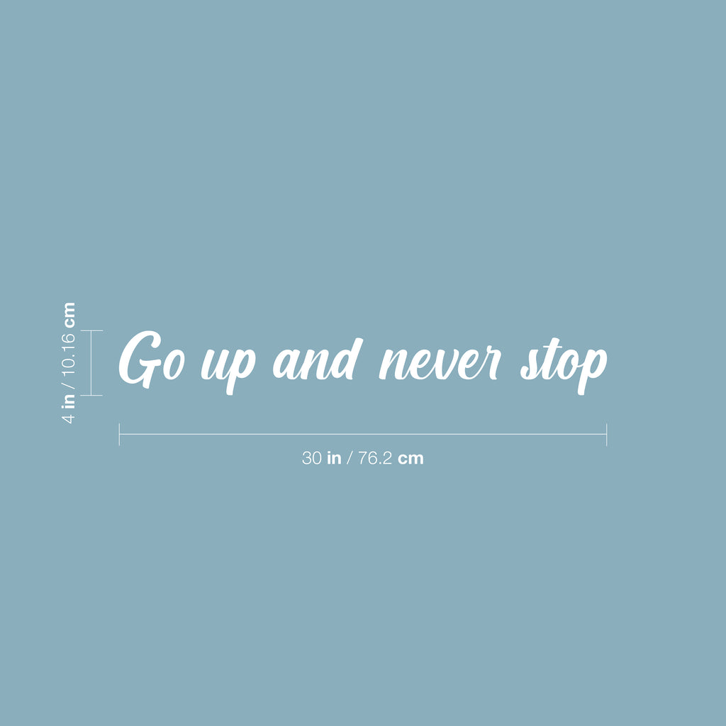 This awesome inspirational decal quote "Go Up And Never Stop"; is the perfect touch for your home or classroom. Use it for your home school; living room; office or anywhere you want to bring some extra decoration. It's a vinyl sticker that is easy to put on any smooth and dry surface. Our modern designs don't just brighten up the room; but brighten up the day. Using top of the line vinyl across all of our production allows us to be the leaders in quality and design.