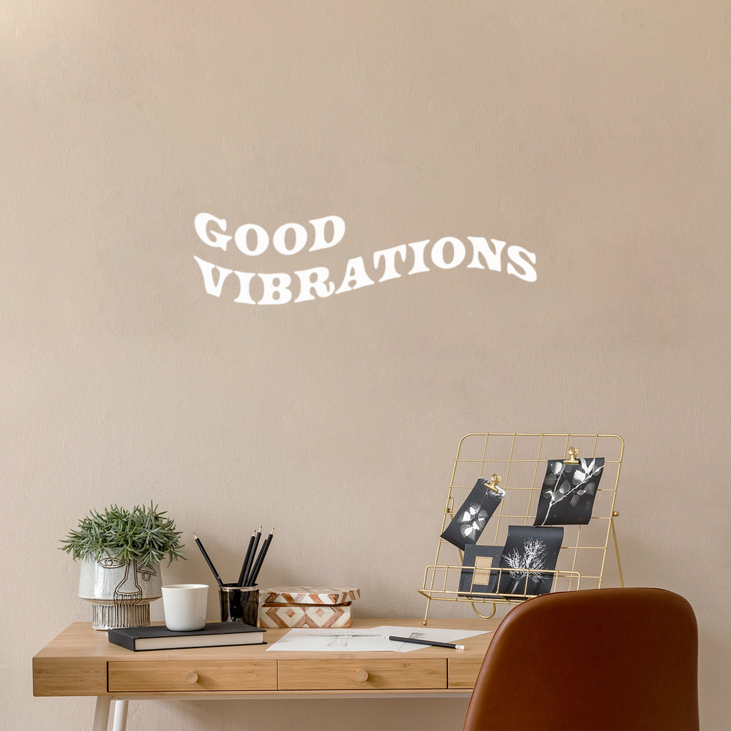 This awesome positive decal quote "Good Vibrations"; is the perfect touch for your school. Use it for your classroom; playroom or anywhere you want to bring some extra inspiring decoration. It's a vinyl sticker that is easy to put on any smooth and dry surface. Our modern designs don't just brighten up the room; but brighten up the day. Using top of the line vinyl across all of our production allows us to be the leaders in quality and design.
