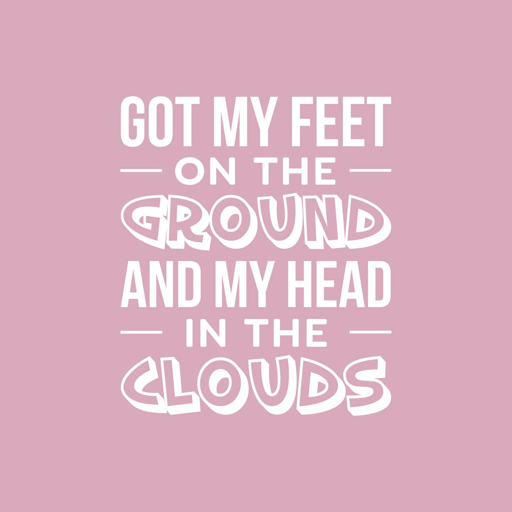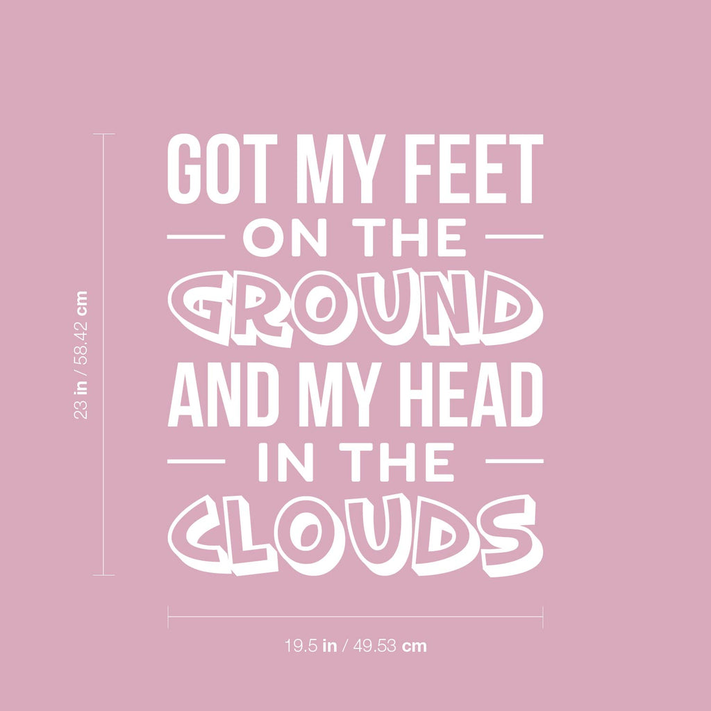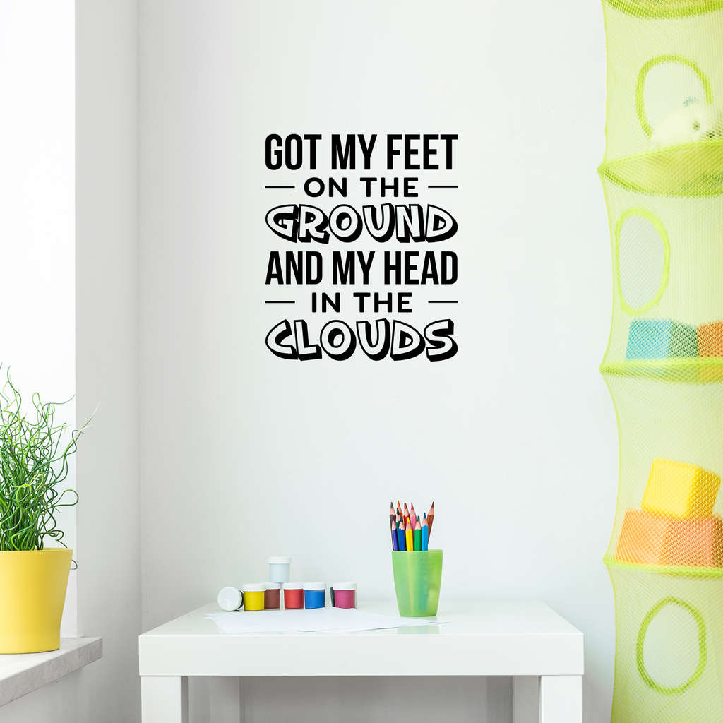 This inspirational & cute decal quote "Got My Feet On The Ground And My Head On The Clouds"; is the perfect touch for your home or school. Use it for your living room; playroom; kids room or anywhere you want to bring some extra cute decoration. It's a vinyl sticker that is easy to put on any smooth and dry surface. Our modern designs don't just brighten up the room; but brighten up the day. Using top of the line vinyl across all of our production allows us to be the leaders in quality and design.