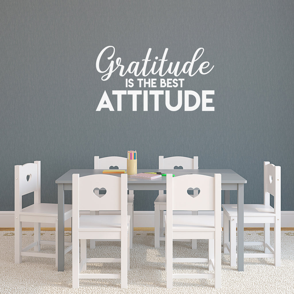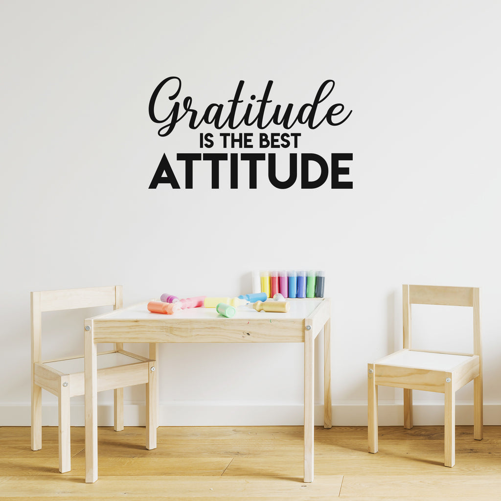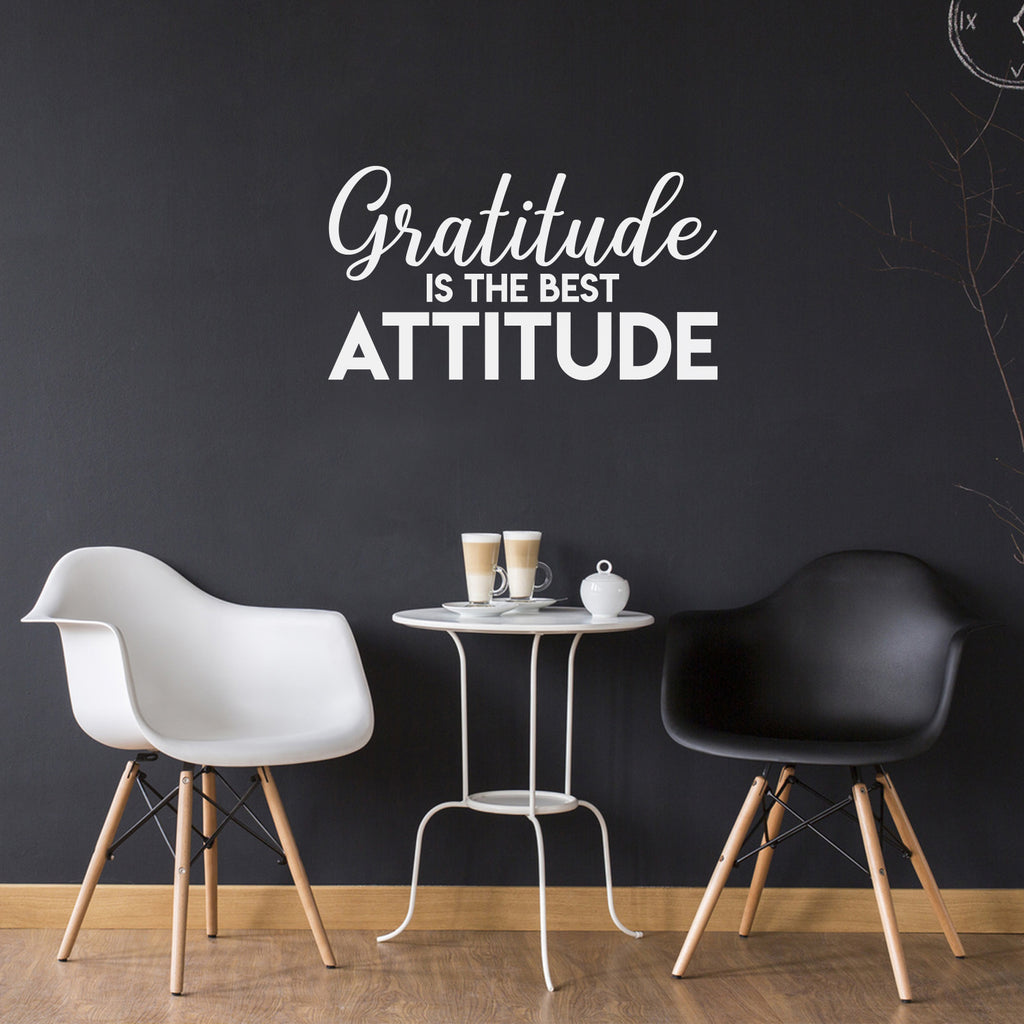 This great decal quote "Gratitude Is The Best Attitude"; is the perfect touch for your home. Use it for your kids room; living room or anywhere you want to bring some extra decoration. It's a vinyl sticker that is easy to put on any smooth and dry surface. Our modern designs don't just brighten up the room; but brighten up the day. Using top of the line vinyl across all of our production allows us to be the leaders in quality and design.