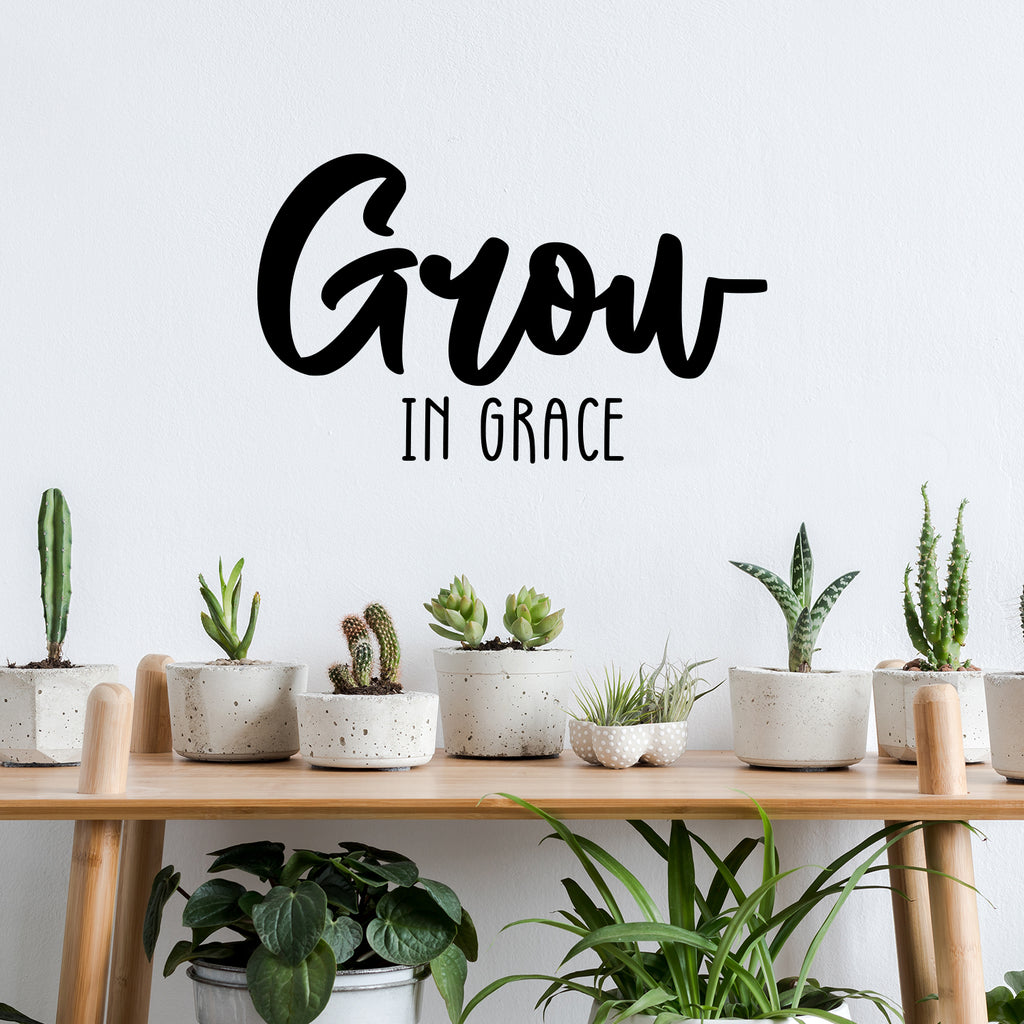 This awesome decal quote "Grow In Grace"; is the perfect touch for your home. Use it for your kids room; living room or anywhere you want to bring some extra decoration. It's a vinyl sticker that is easy to put on any smooth and dry surface. Our modern designs don't just brighten up the room; but brighten up the day. Using top of the line vinyl across all of our production allows us to be the leaders in quality and design.